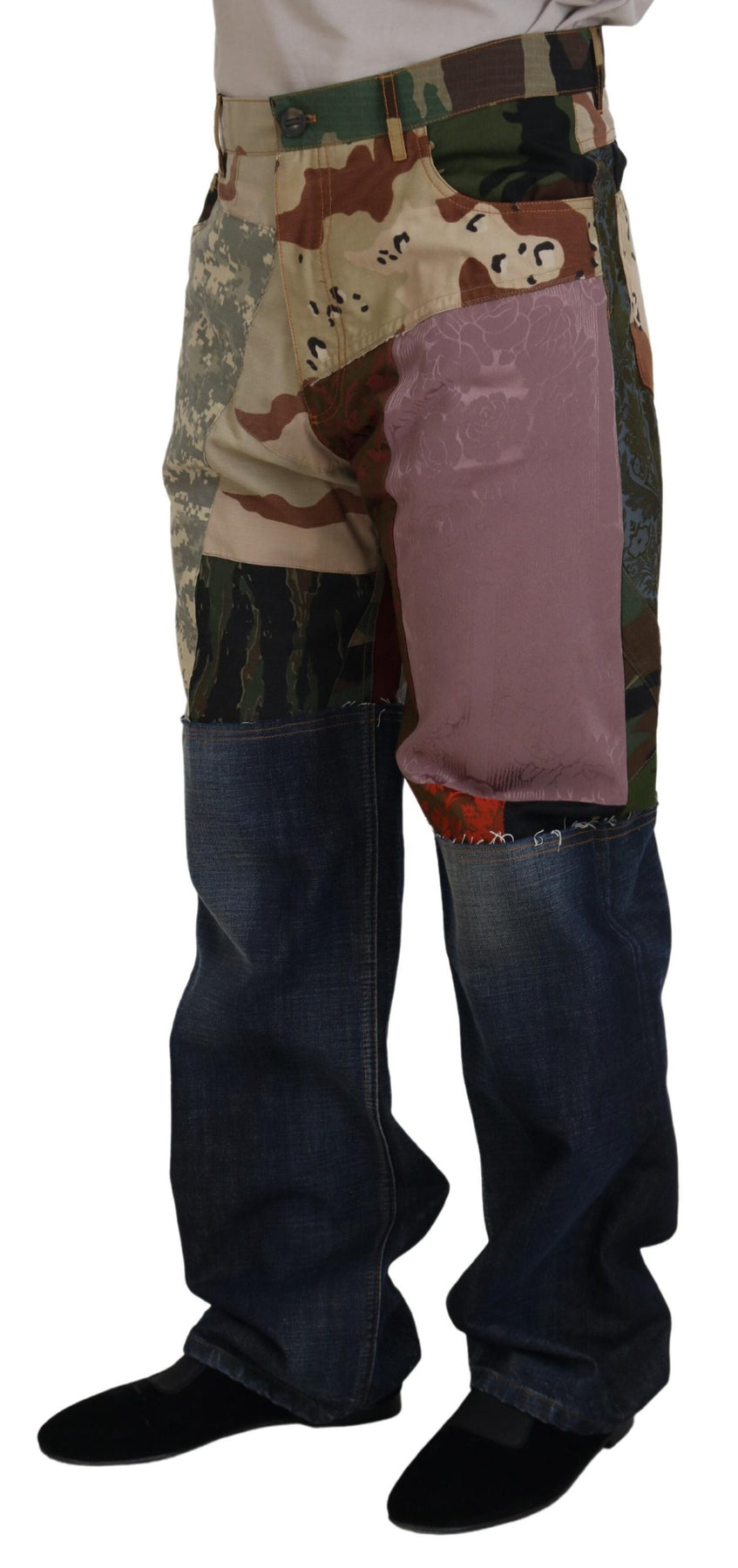Dolce & Gabbana Multicolor Silk Patchwork Men Denim Jeans