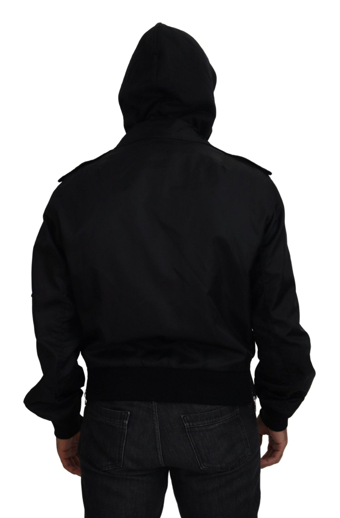 Dolce & Gabbana Black Nylon Hooded Full Zip Men Coat Jacket
