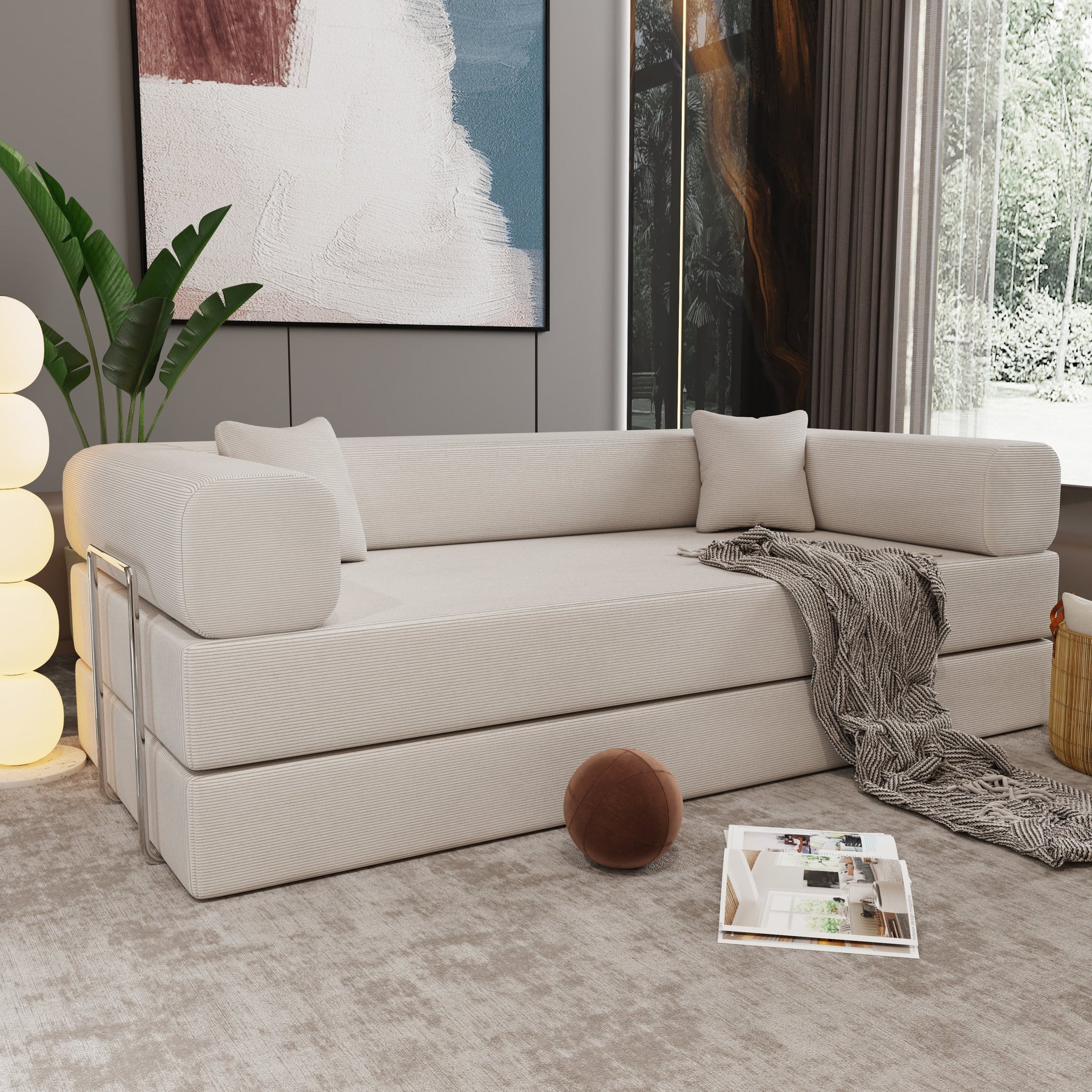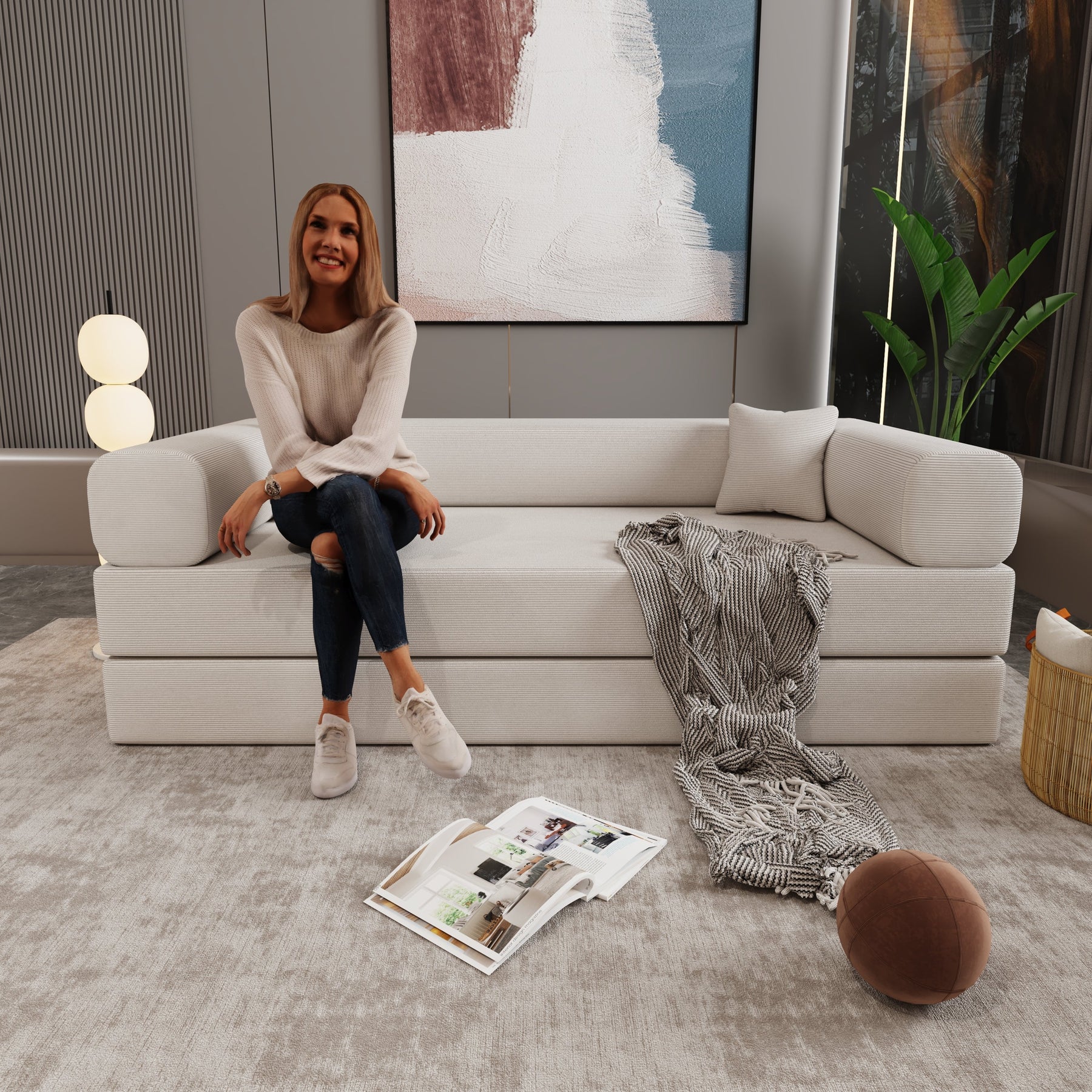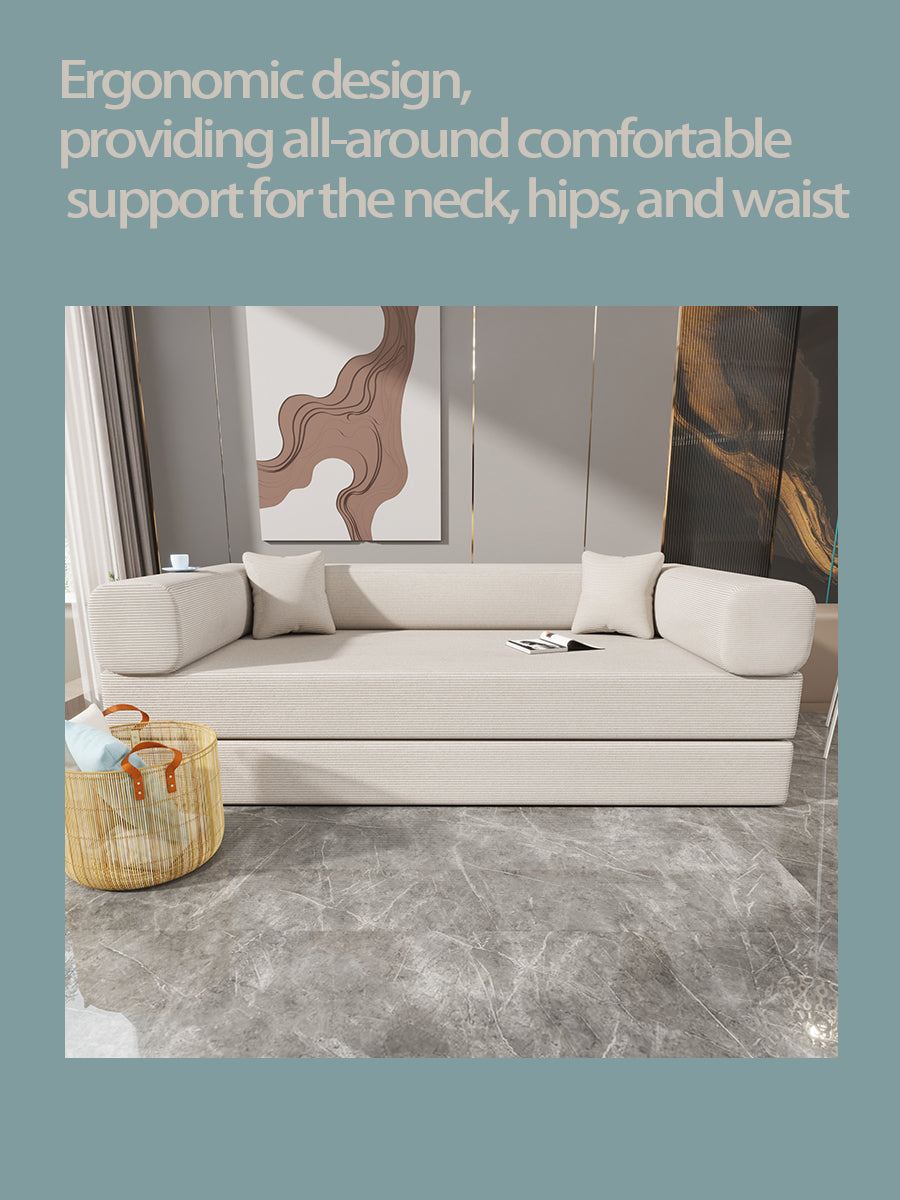 Made of high elasticity pure sponge, covered with corduroy fabric, equipped with two soft pillows, it is the most comfortable harbor for you to rest when tired or tired. It has the function of a sofa bed, and no matter how you use it, the wide armrests and soft cushions can quickly eliminate fatigue and immediately fall in love with it