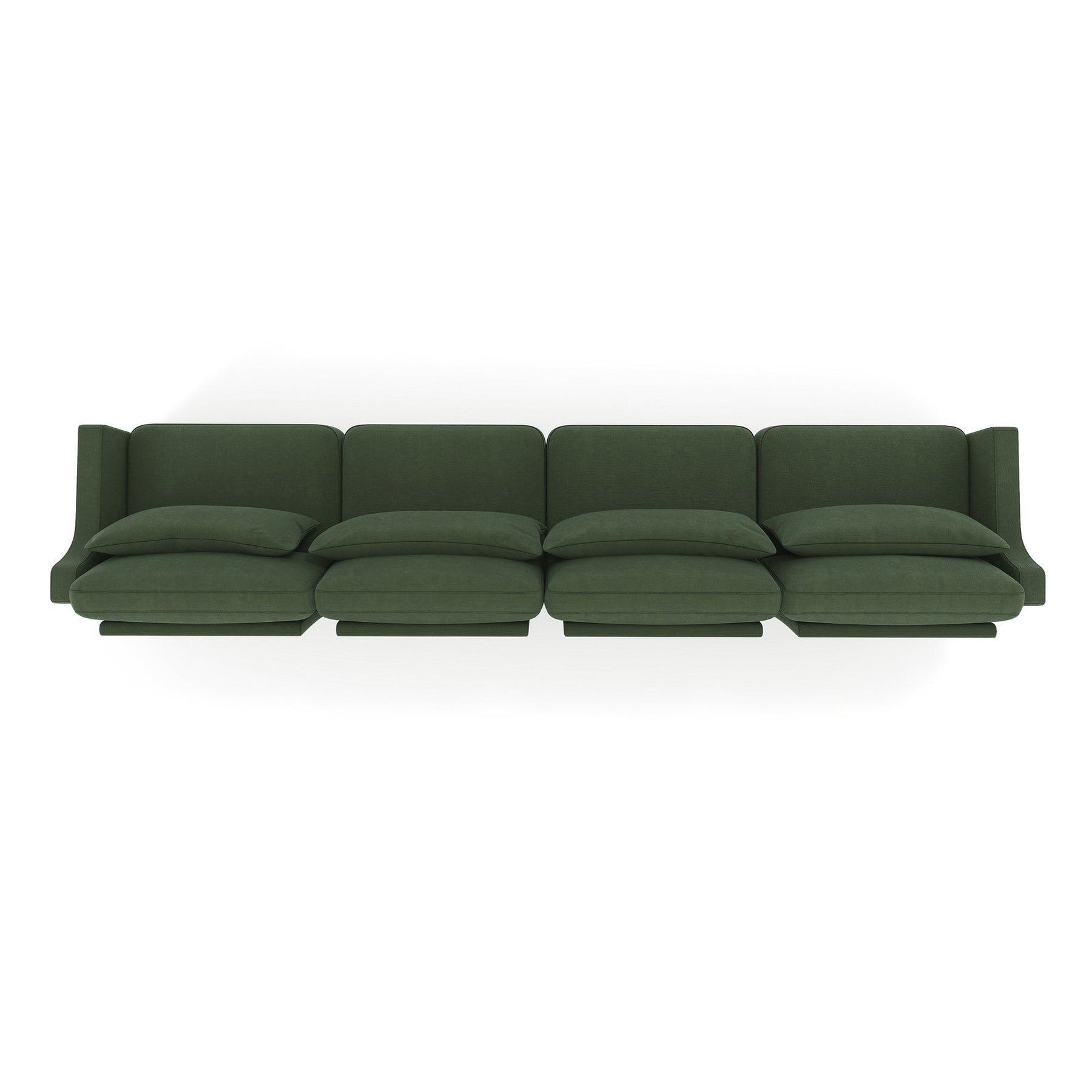 Ergonomic Green Chenille Four-Seater Sofa with Lumbar Pillow, Solid Wood Frame, High-Resilience Sponge
