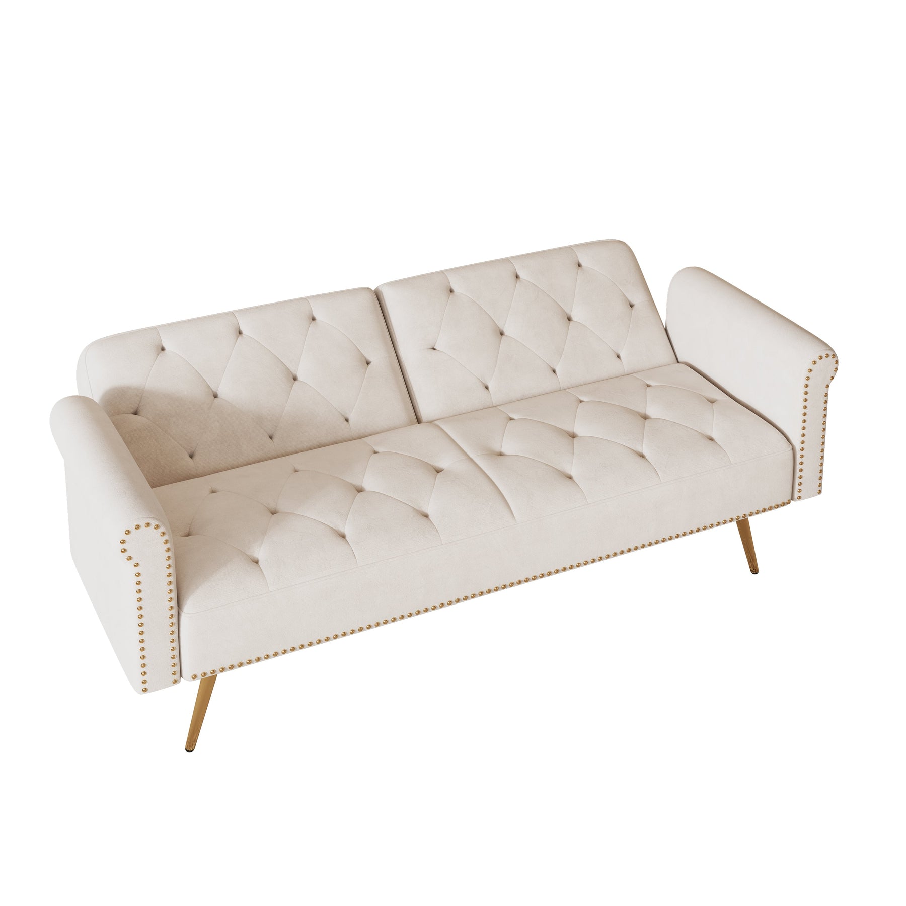 Luxurious Velvet Sofa Bed with Nail Head Trim and Matching Pillow in Beige, 69.7-Inch