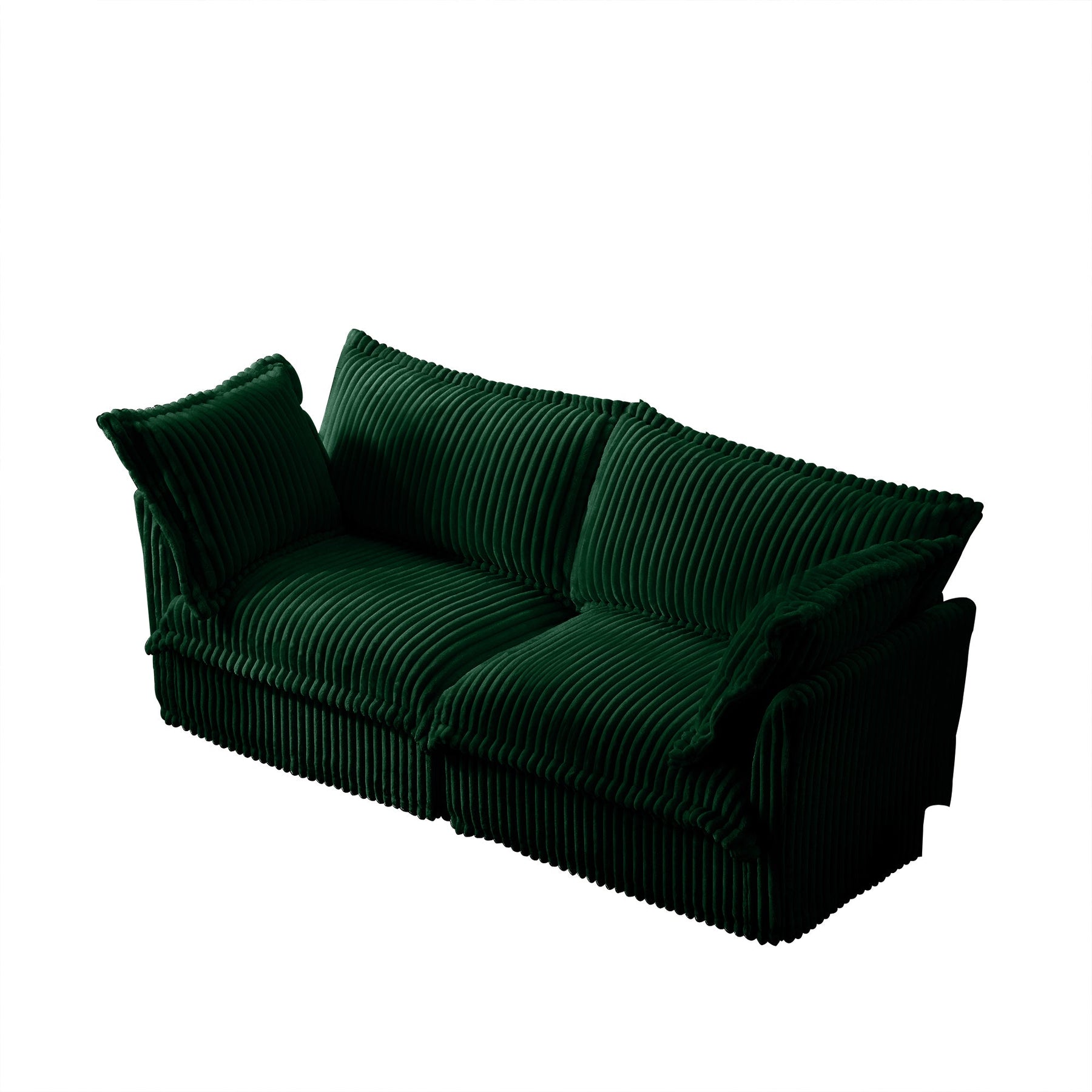 Modern Slipcovered 2-Seat Sofa Couches for Living Room, 2 Seater Sofa, Corduroy Deep Seat Sofa with Upholstered Cushion&Detachable Cover, Comfy Sofa Couch for Small Space, Apartment, Green Corduroy