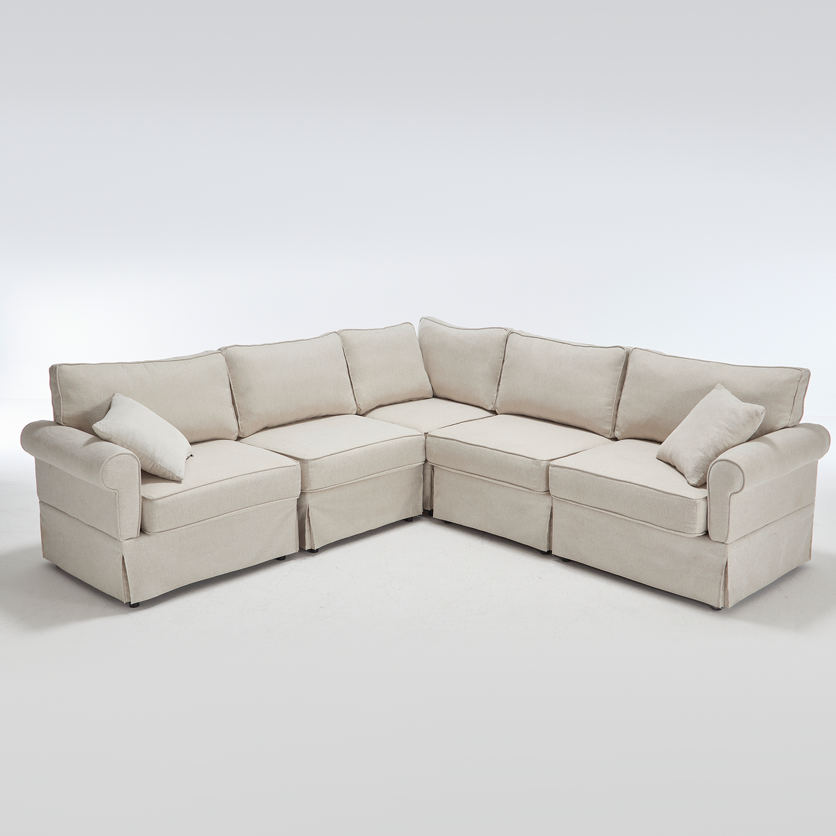[NEW ARRIVED] [VIDEO PROVIDED] Modular Sectional Sofa Set,Convertible L Shaped Couch ,5 Seat,Reversible Sectional Sofa Couch,Upholstered,Corner Sofa,Rolled Arms,Soft Linen Fabric, Beige