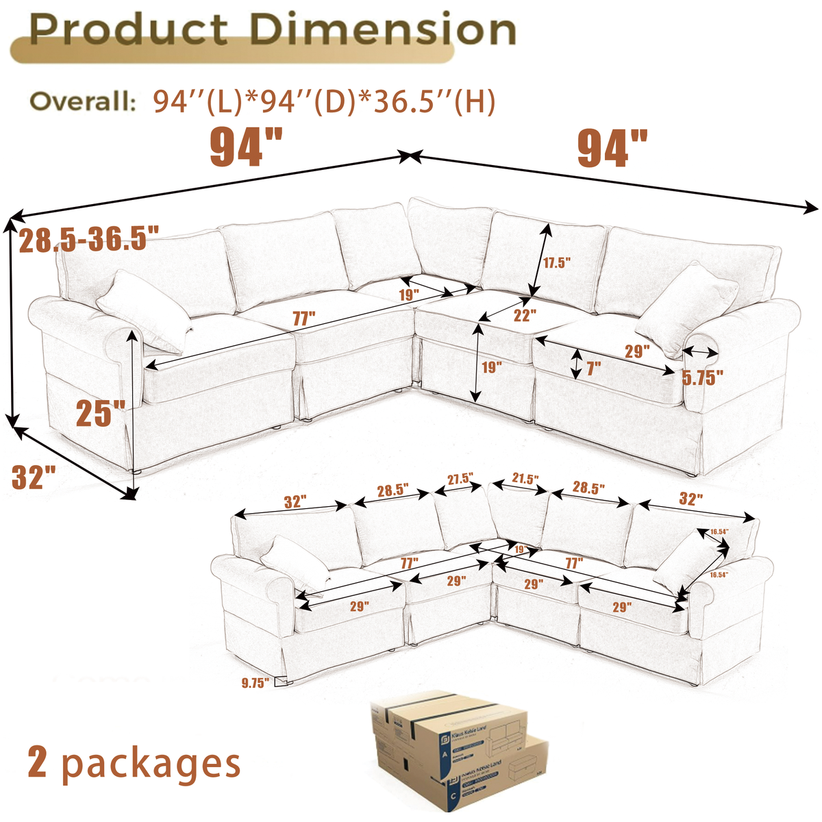 - 【Size】 Sofa size: 94 'W x 94'D x 36.5'H
