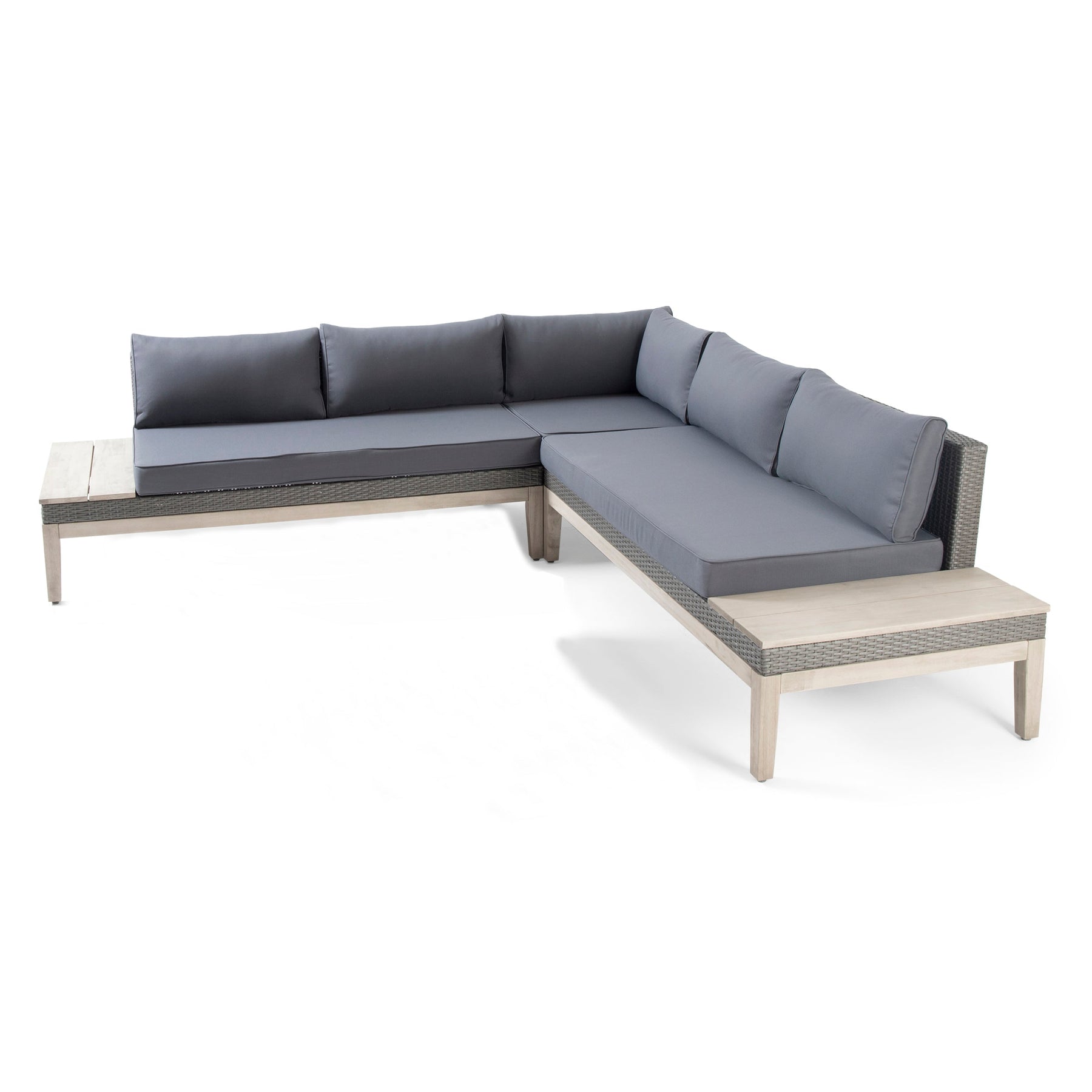 Outdoor Acacia Wood and Wicker 3 Piece Sectional Sofa Set