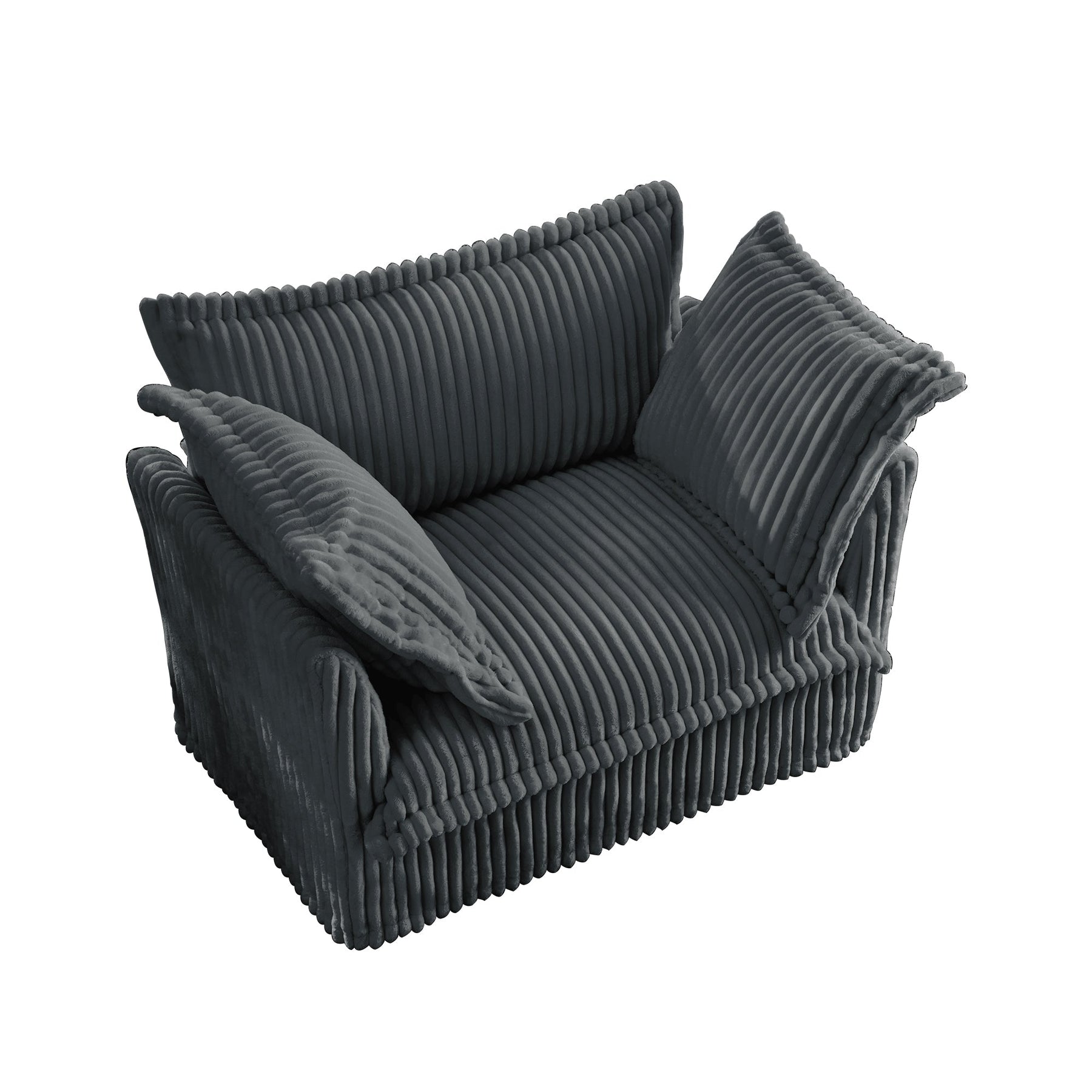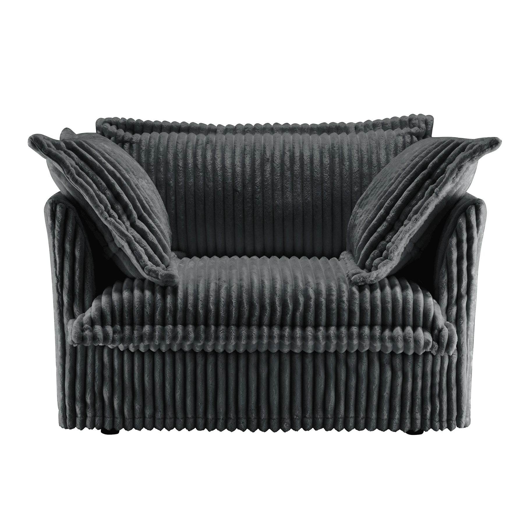Slip-covered Armchair with 1 Big Back Cushion and 2 Big Toss Pillows, Single Deep Seat Comfy Single Couch Sofa Multiple Large Soft Pillows, Grey  Corduroy Fabric