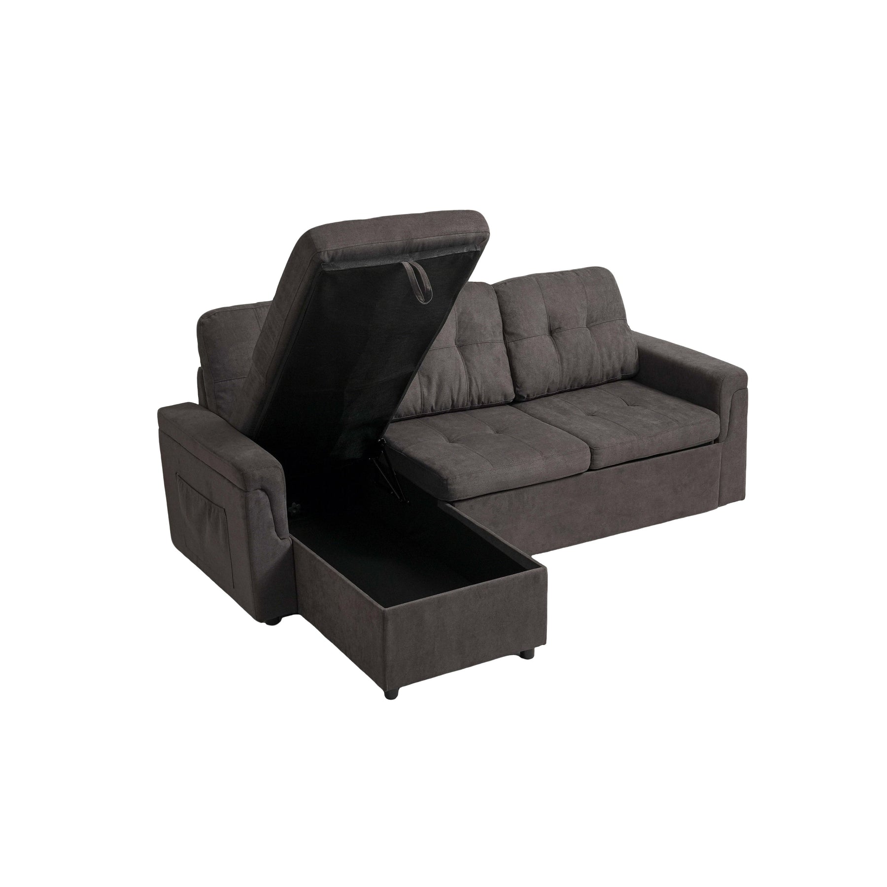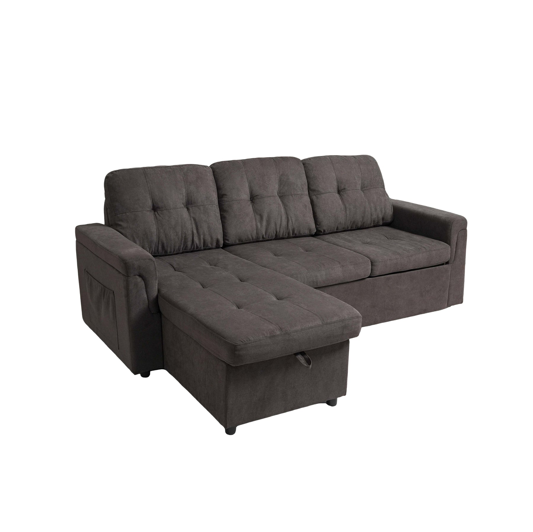 Upholstered Sleeper Sofa, L Shaped Sectional Couch with Reversible Storage, Convertible Corner Lounge Couches w/Pull Out Sofa bed for Living Room, Apartment,