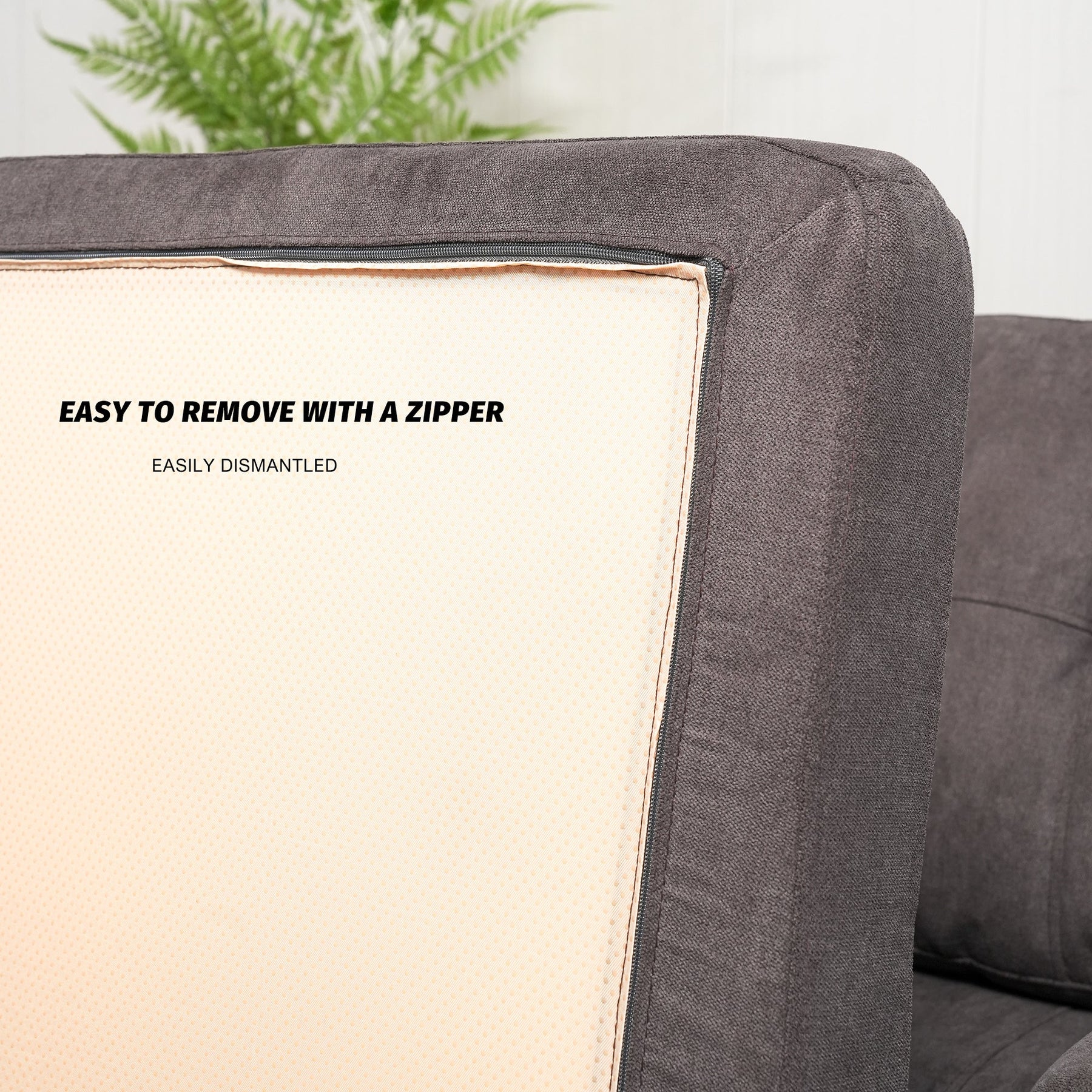 • Breathable Fabric No more sweaty summers! The breathable fabric keeps you cool and comfortable, making it a great choice for any climate.Comfortable Cushion sink into plush, comfortable cushions that make this pull-out couch a dream to sit on. lt's the perfect blend of softness and support,ensuring you're always comfortable.Careful Stitching It's all in the details. The careful stitching not only adds durability but also gives this sectional sofa couch a polished,