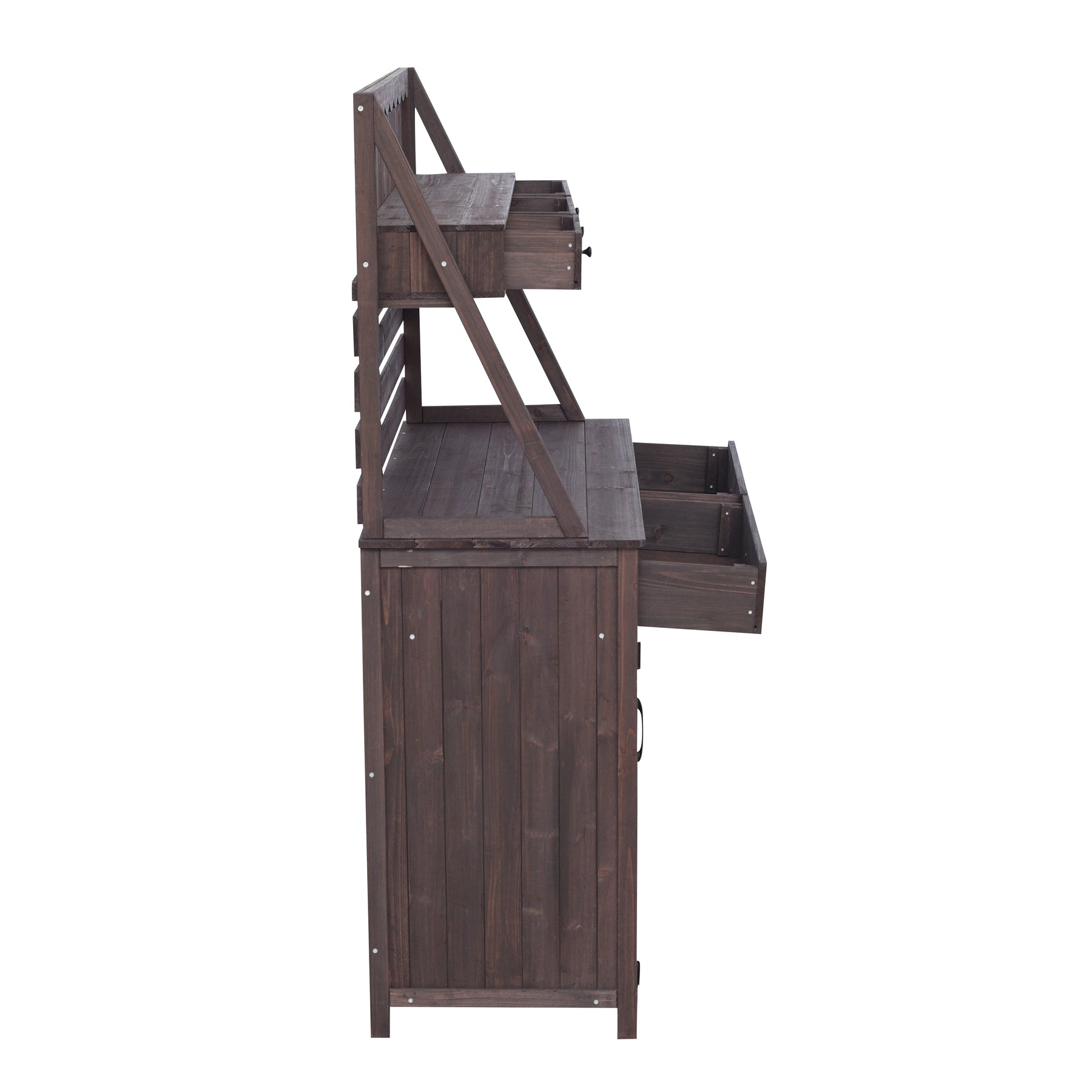 • Premium Fir Wood Construction: Crafted from durable, naturally weather-resistant fir wood with a rich brown finish, this potting bench combines rustic charm with long-lasting outdoor performance. The solid wood structure ensures stability for heavy potting tasks.