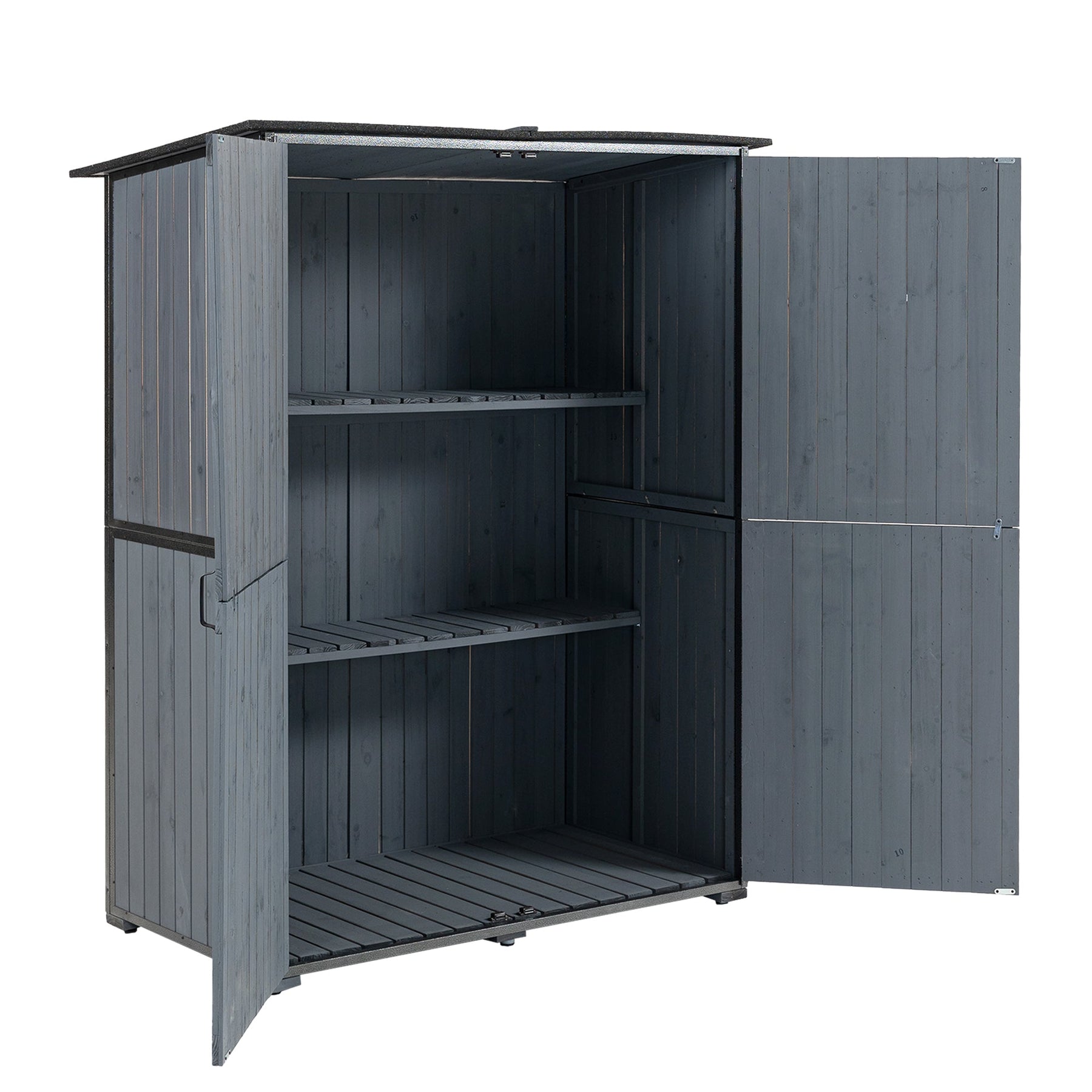 • This outdoor storage shed is upgraded with double doors and has a large storage space. With 3 compartments, it can accommodate a large number of tools and equipment.