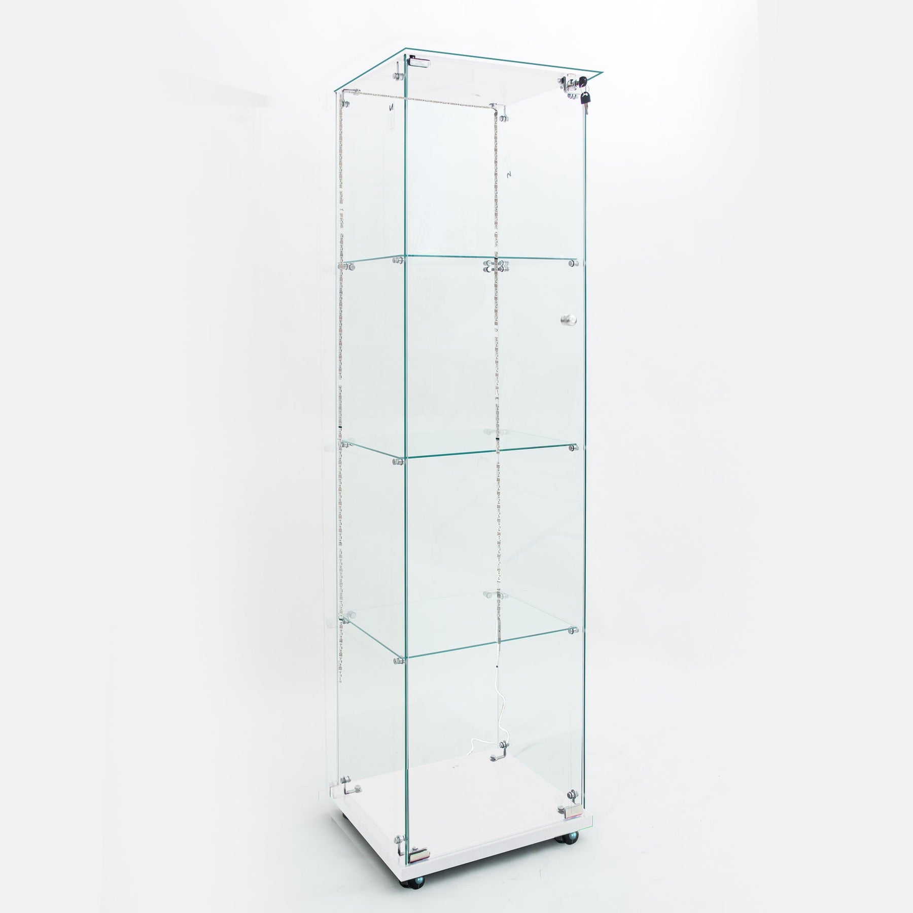• Tempered Glass Display Cabinet: Measures 65.00' (H) x 15.67' (L) x13.58' (W), with an overall weight capacity of 110 lbs, each tempered glass shelf can hold up to 11lbs,Color: white