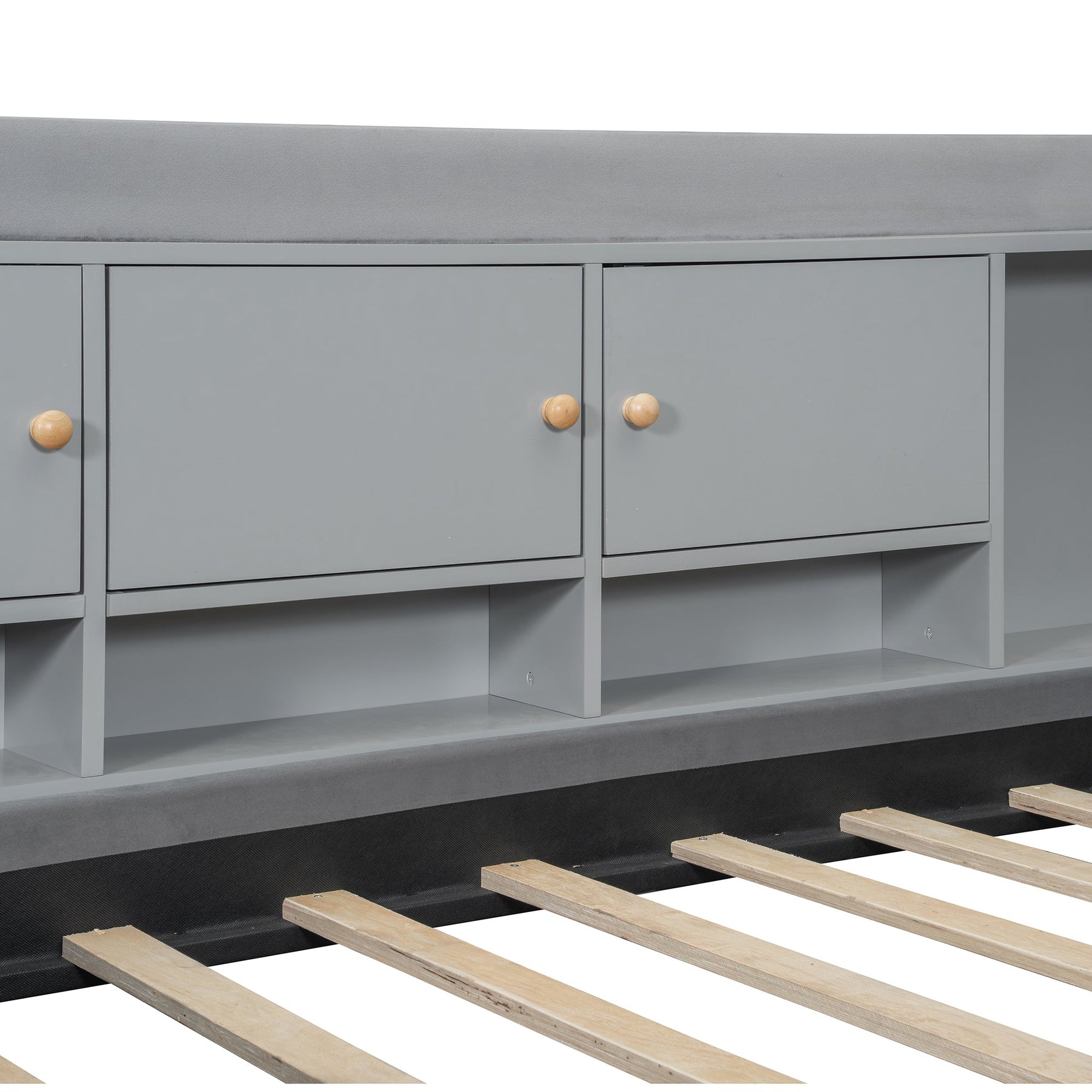 Twin Size Upholstered Daybed with Drawers, Shelves, Flip Cabinets & Side Table (Gray)