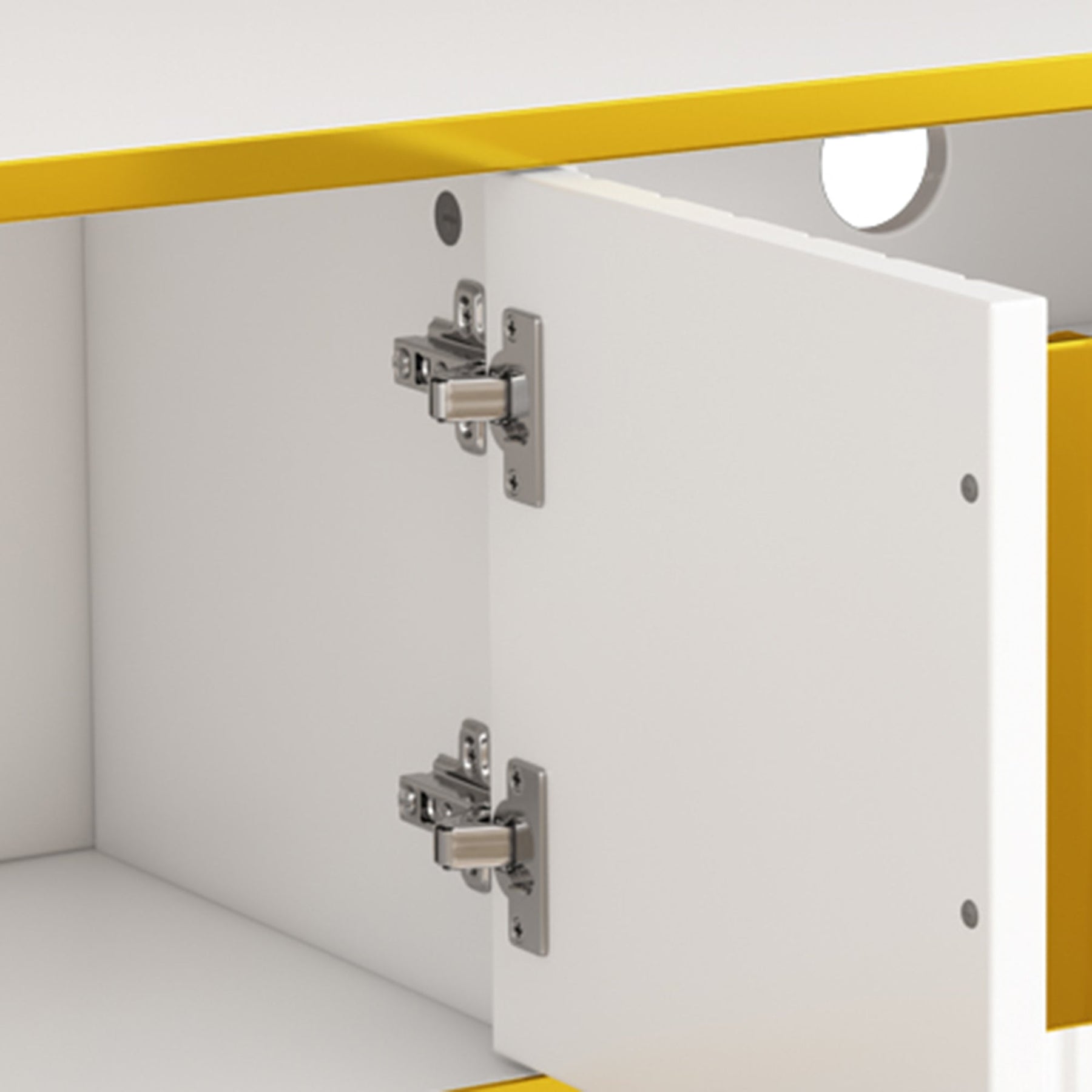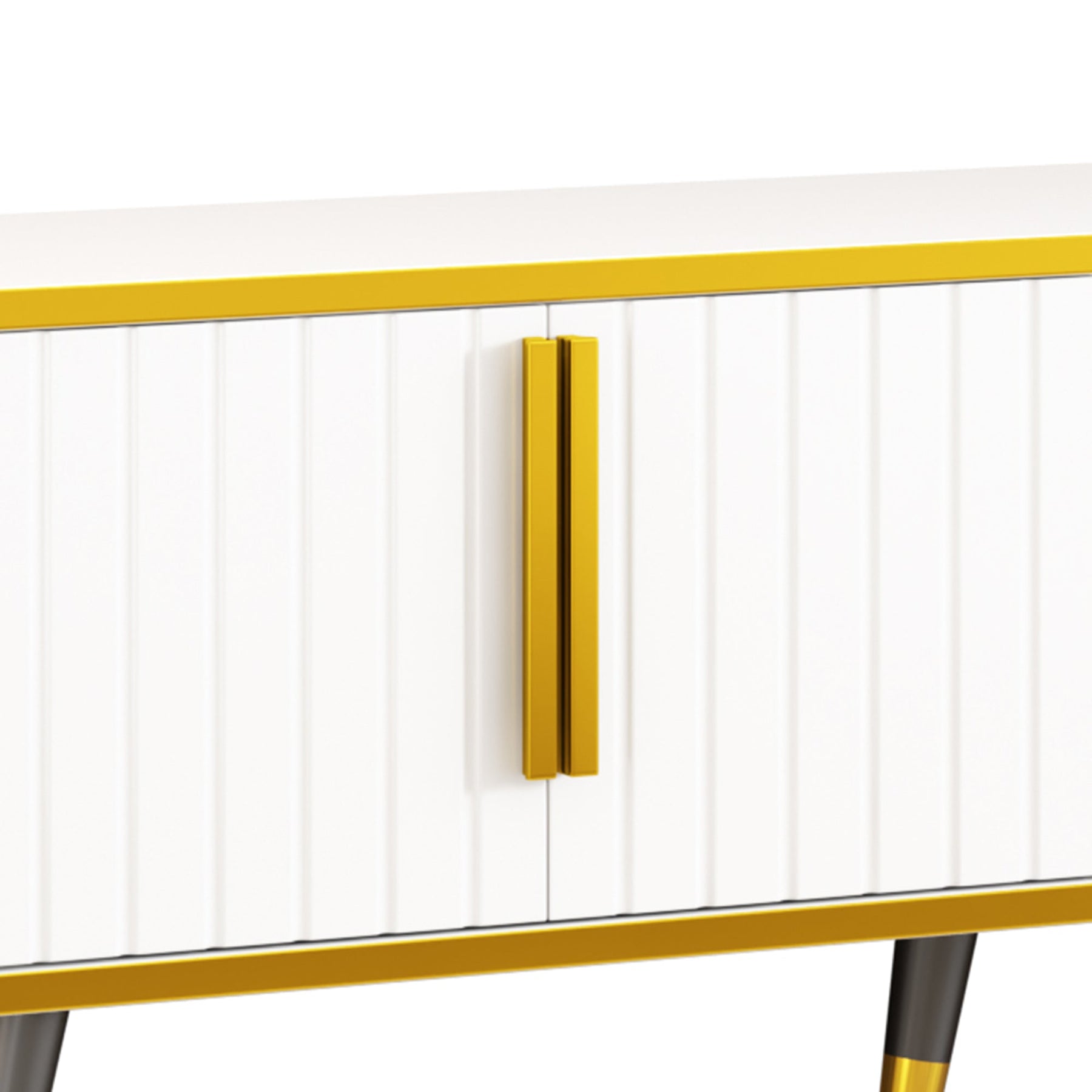 • This TV cabinet integrates the simple line design and the embellishment of golden elements, not only showing the modern fashion style, but also exuding a hint of luxury and elegance.