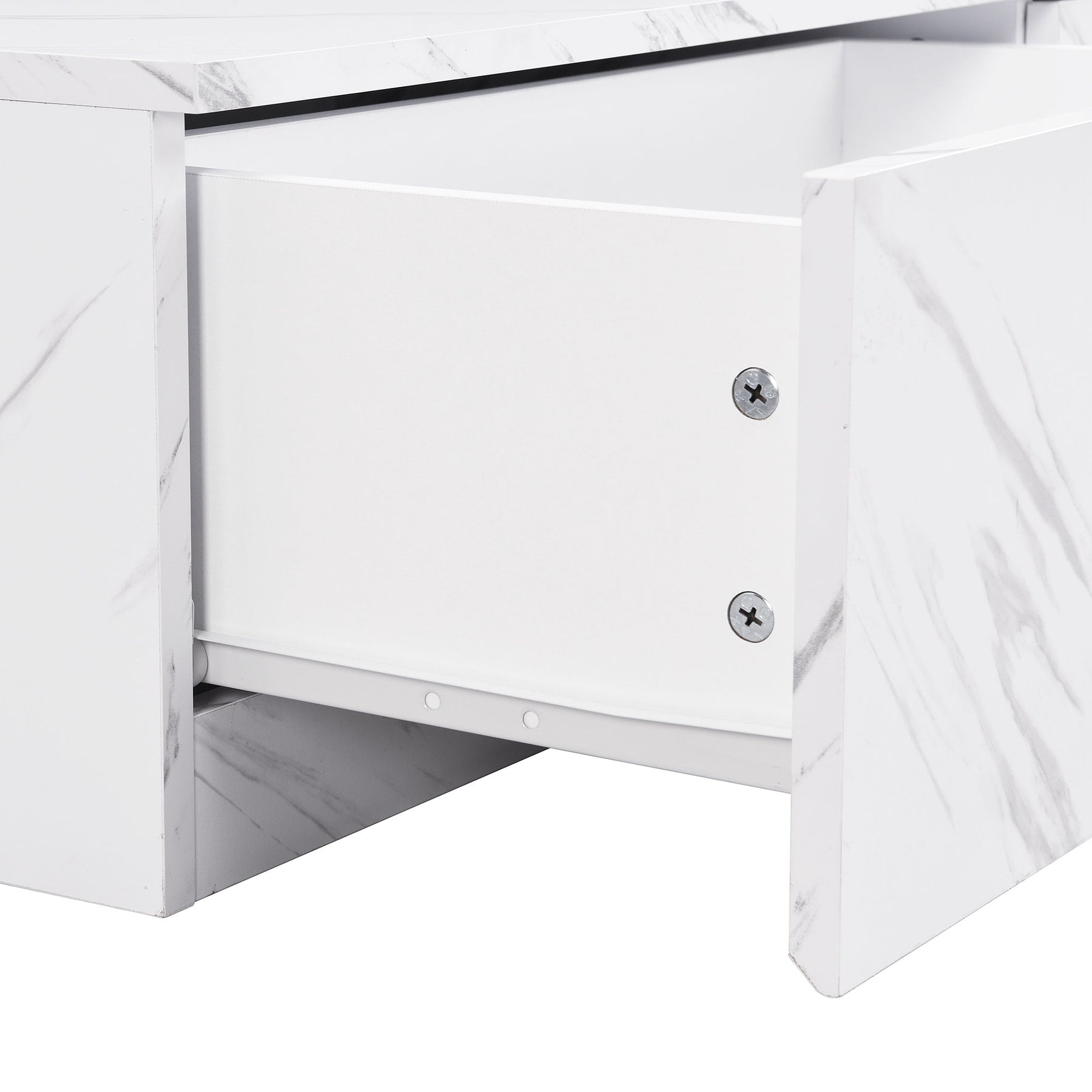 ON-TREND TV Stand with Faux Marble and Walnut Wood Grain Finish for TVs up to 88'', Modern Free-Combination Entertainment Center with 4 Storage Drawers for Living Room, White