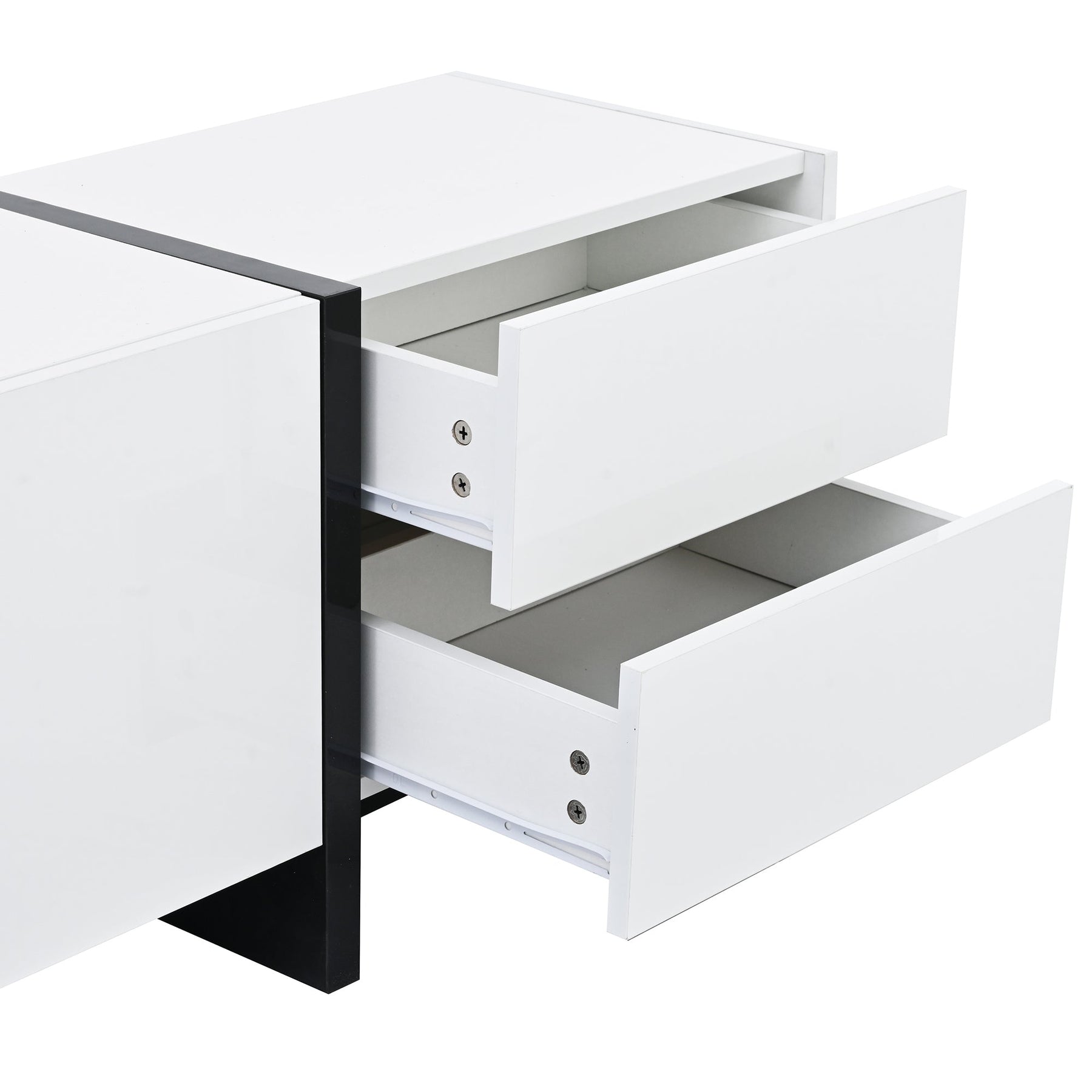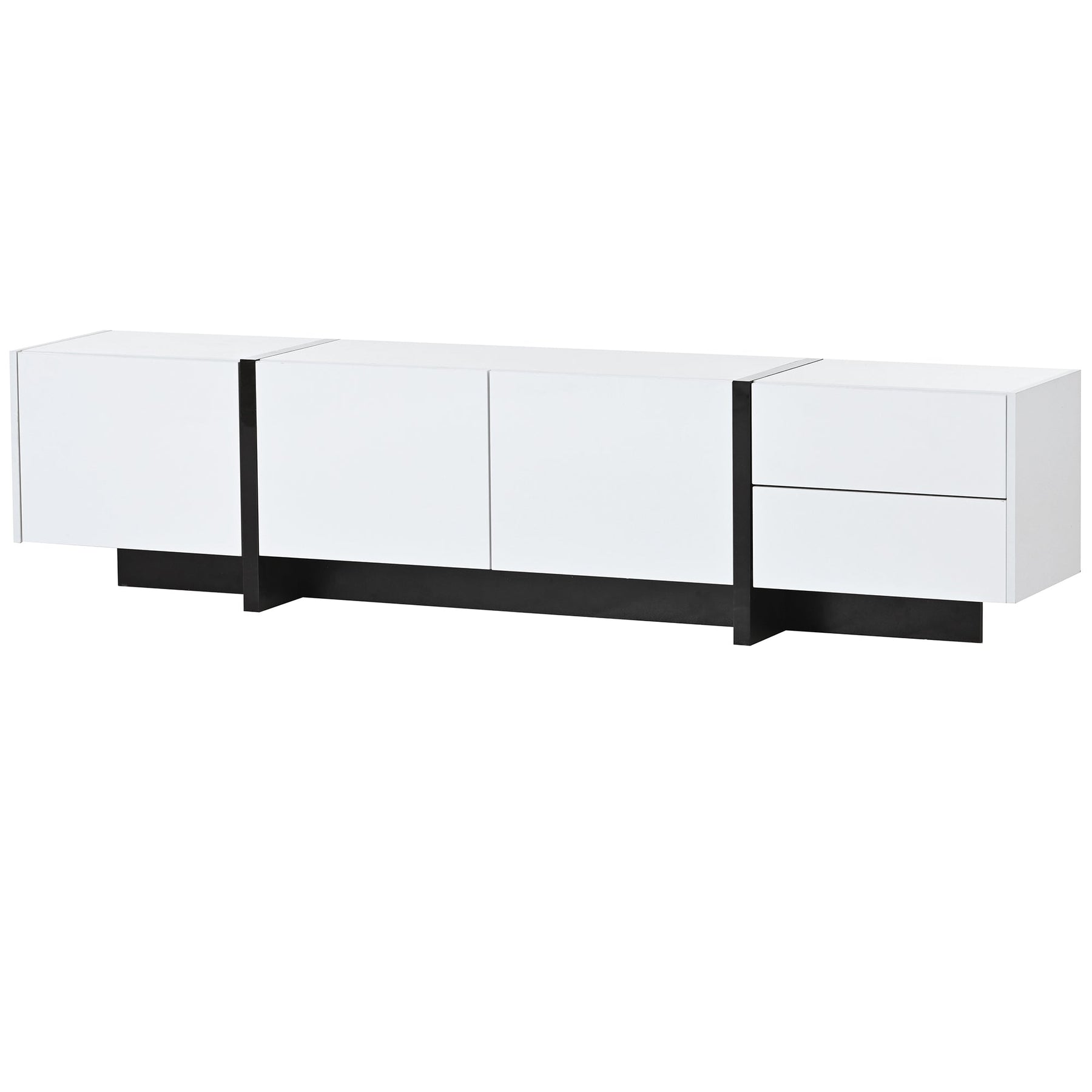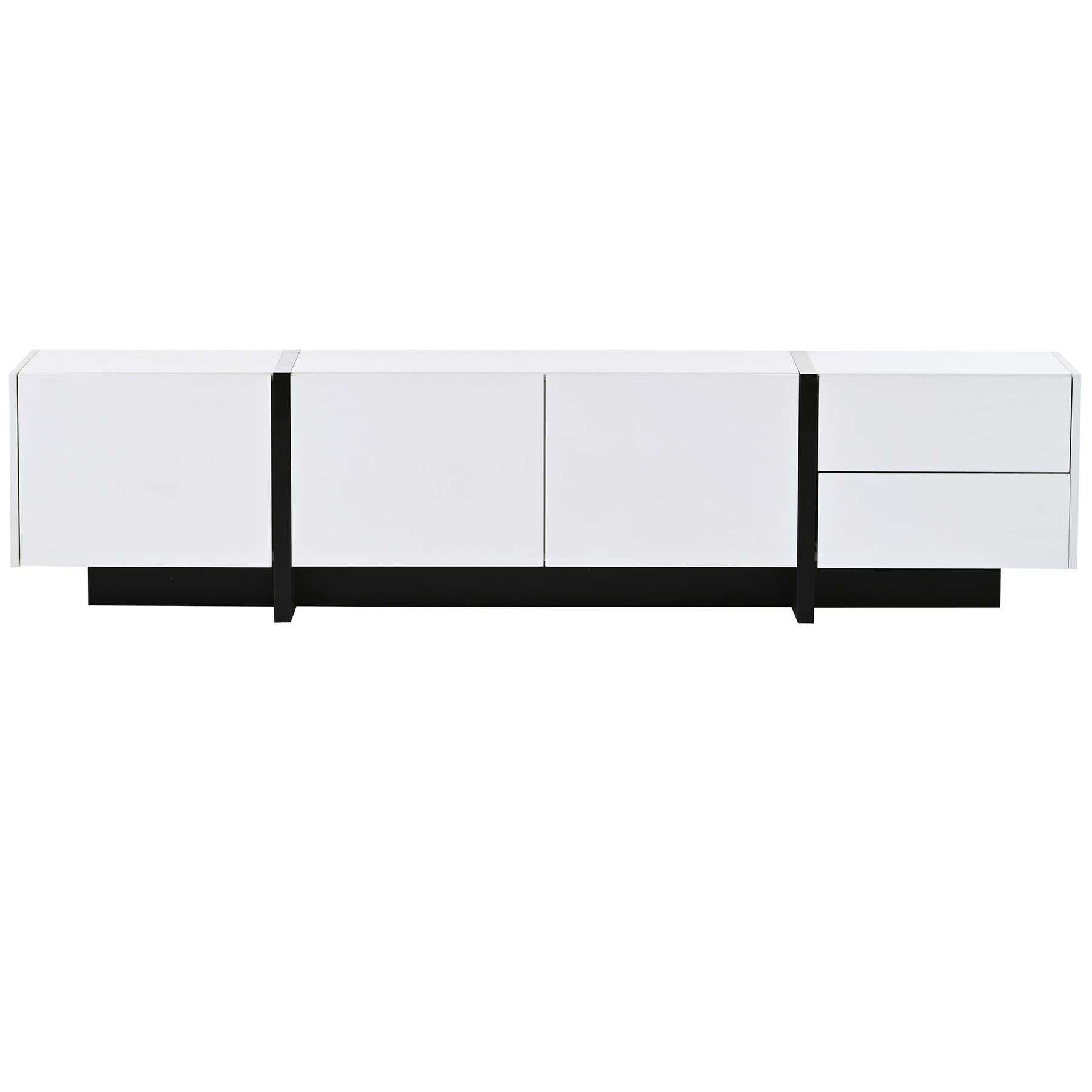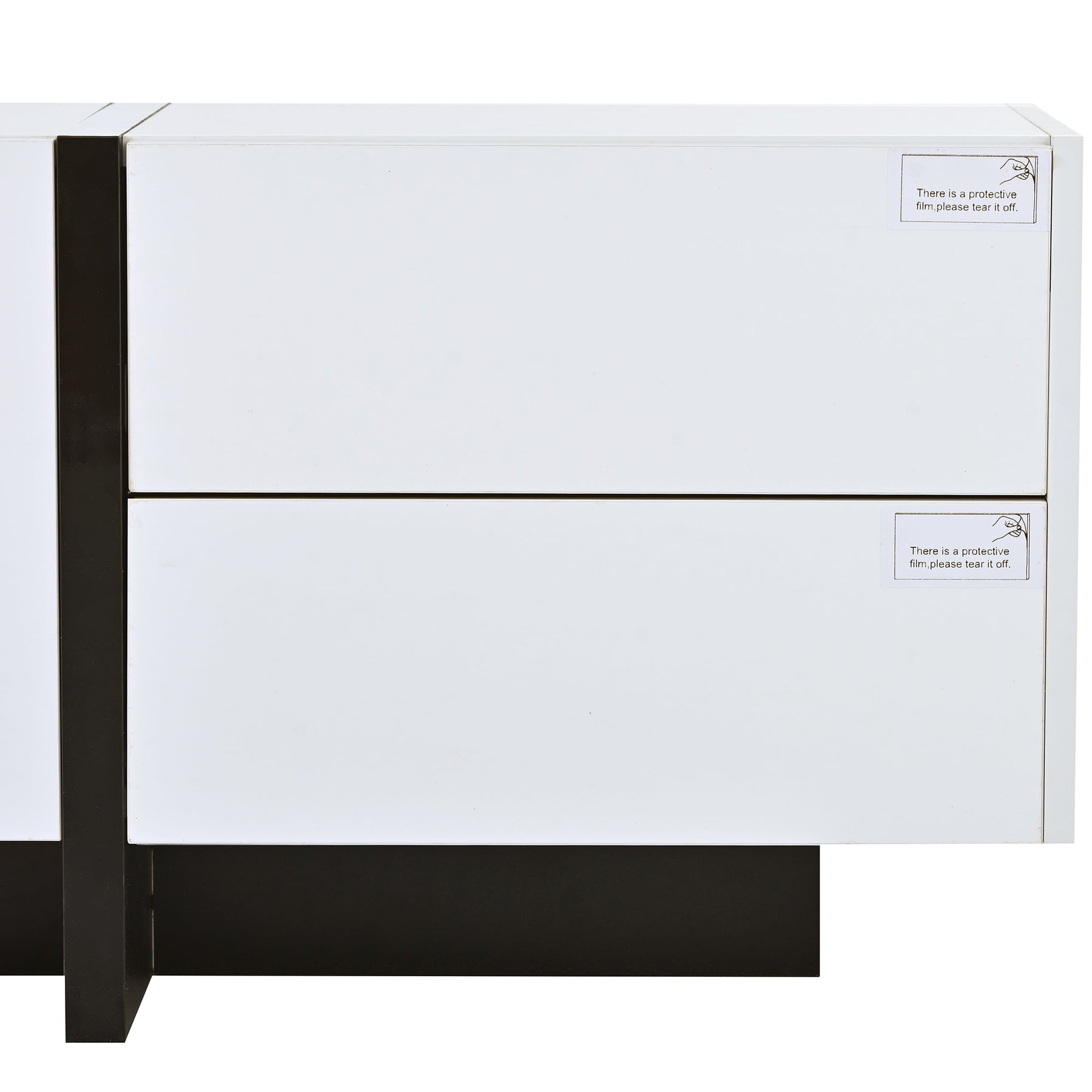 [VIDEO provided] ON-TREND White & Black Contemporary Rectangle Design TV Stand, Unique Style TV Console Table for TVs Up to 80'', Modern TV Cabinet with High Gloss UV Surface for Living Room.