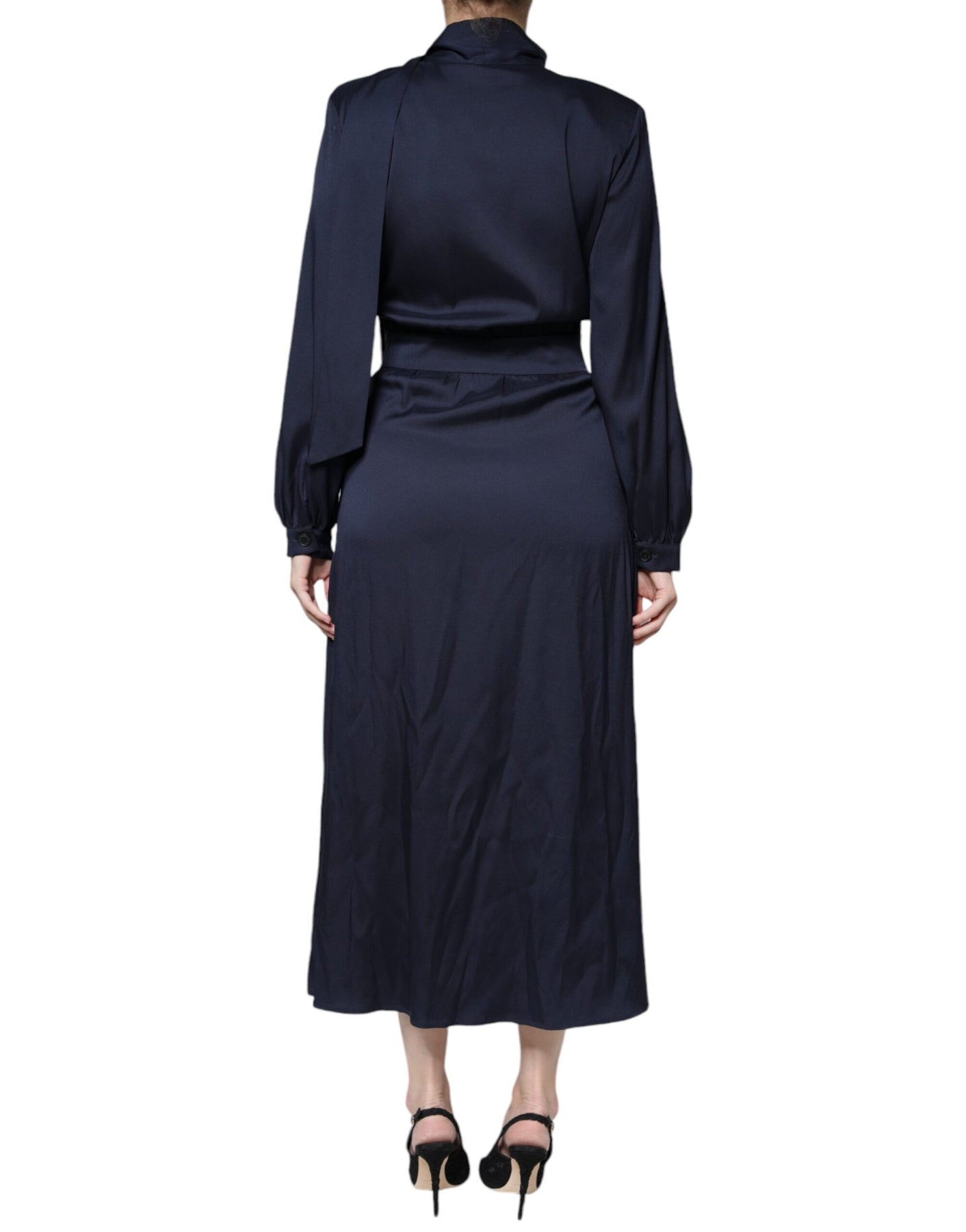 Ballantyne Dark Blue Long Sleeves Pleated A-line Maxi Dress