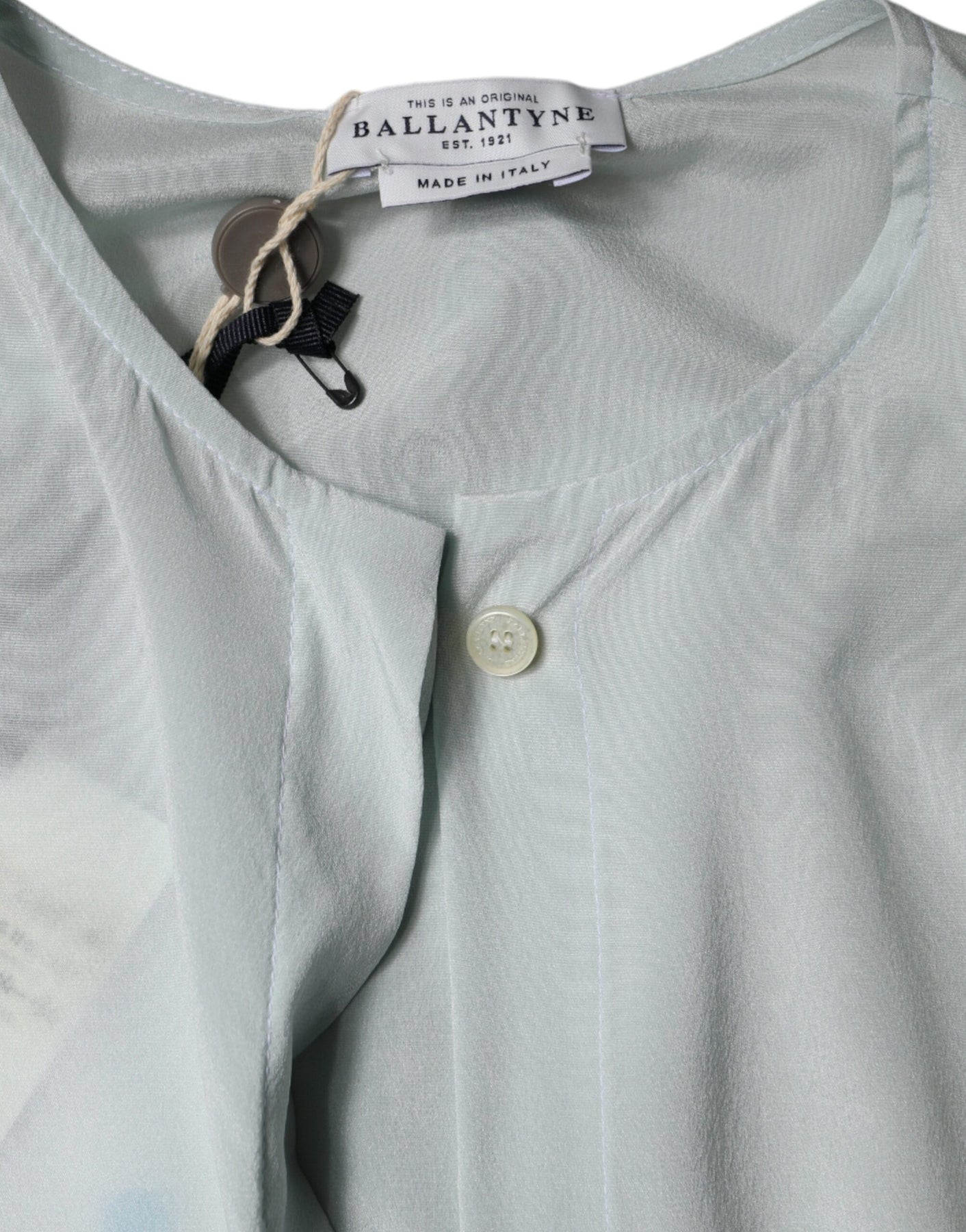 Ballantyne Light Blue Silk Ascot Collared Long Sleeves Top