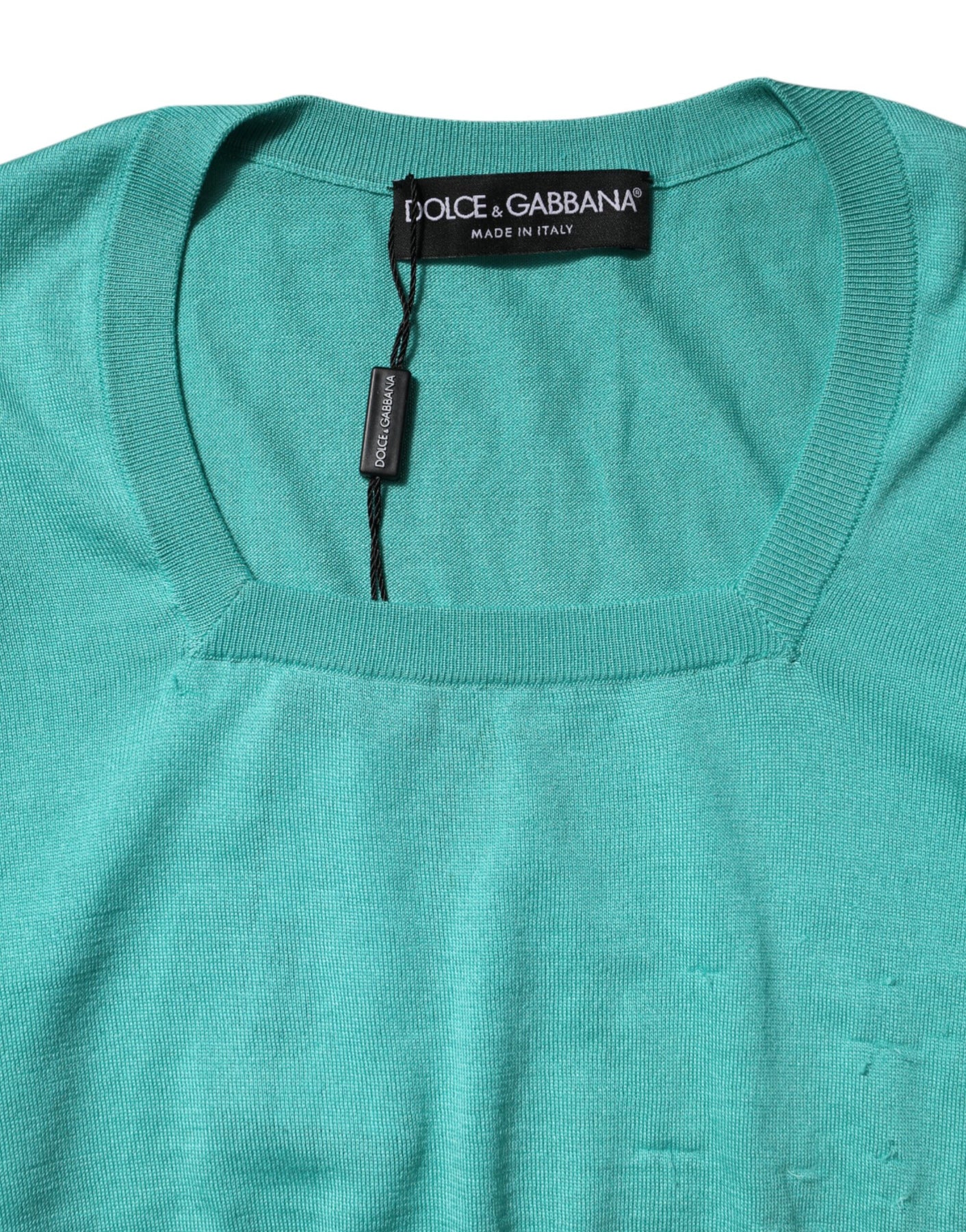 Dolce & Gabbana Aqua Blue Silk Short Sleeves Square Neck Top