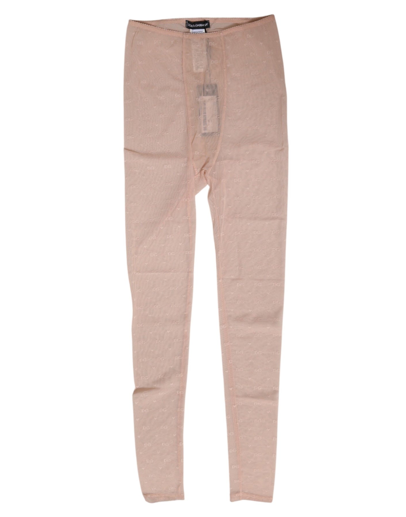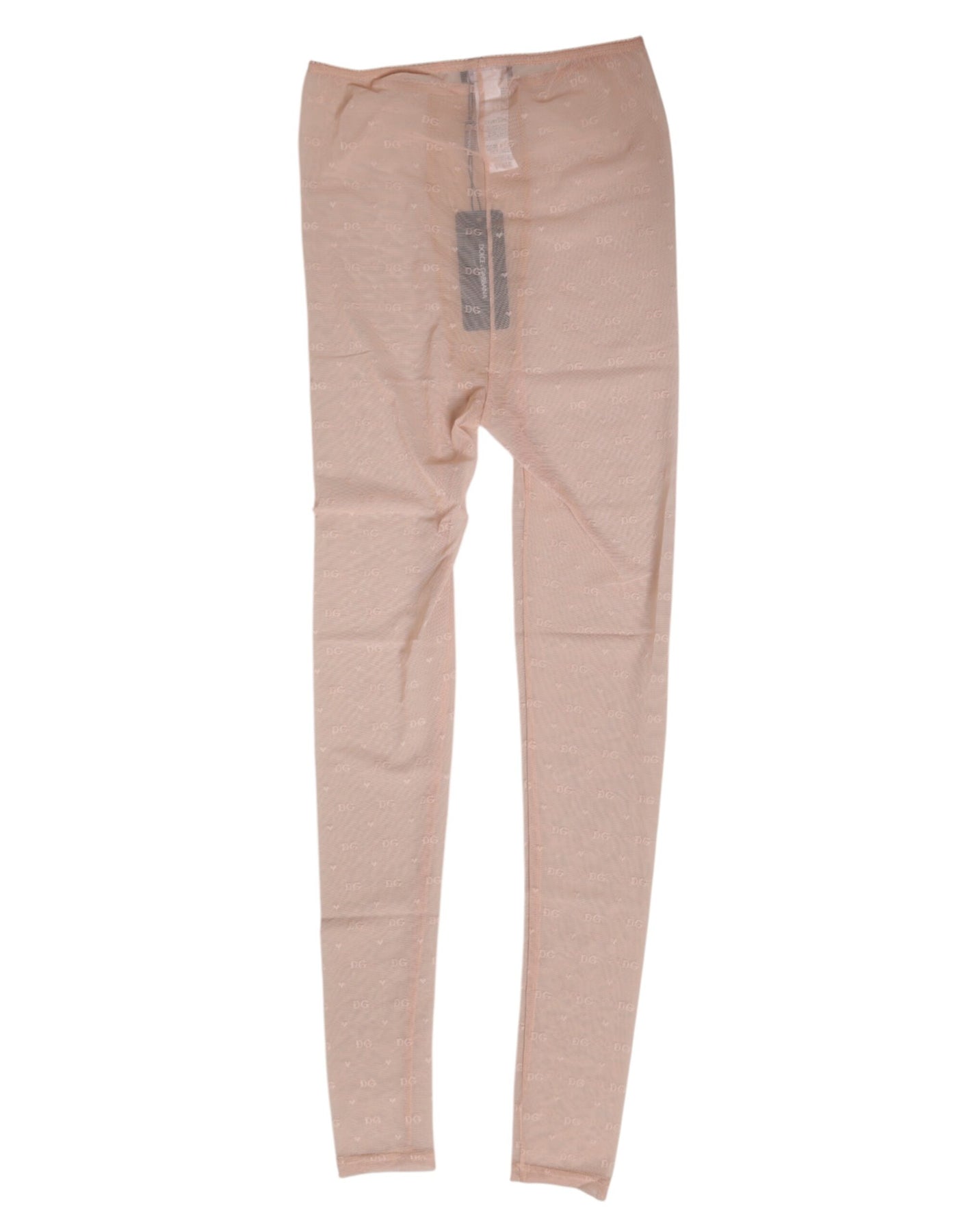 Dolce & Gabbana Beige Nylon Logo Lace Leggings Pants Underwear