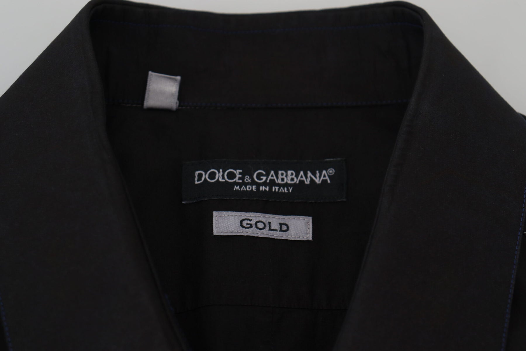 Dolce & Gabbana Black Cotton Collared Long Sleeve GOLD Shirt