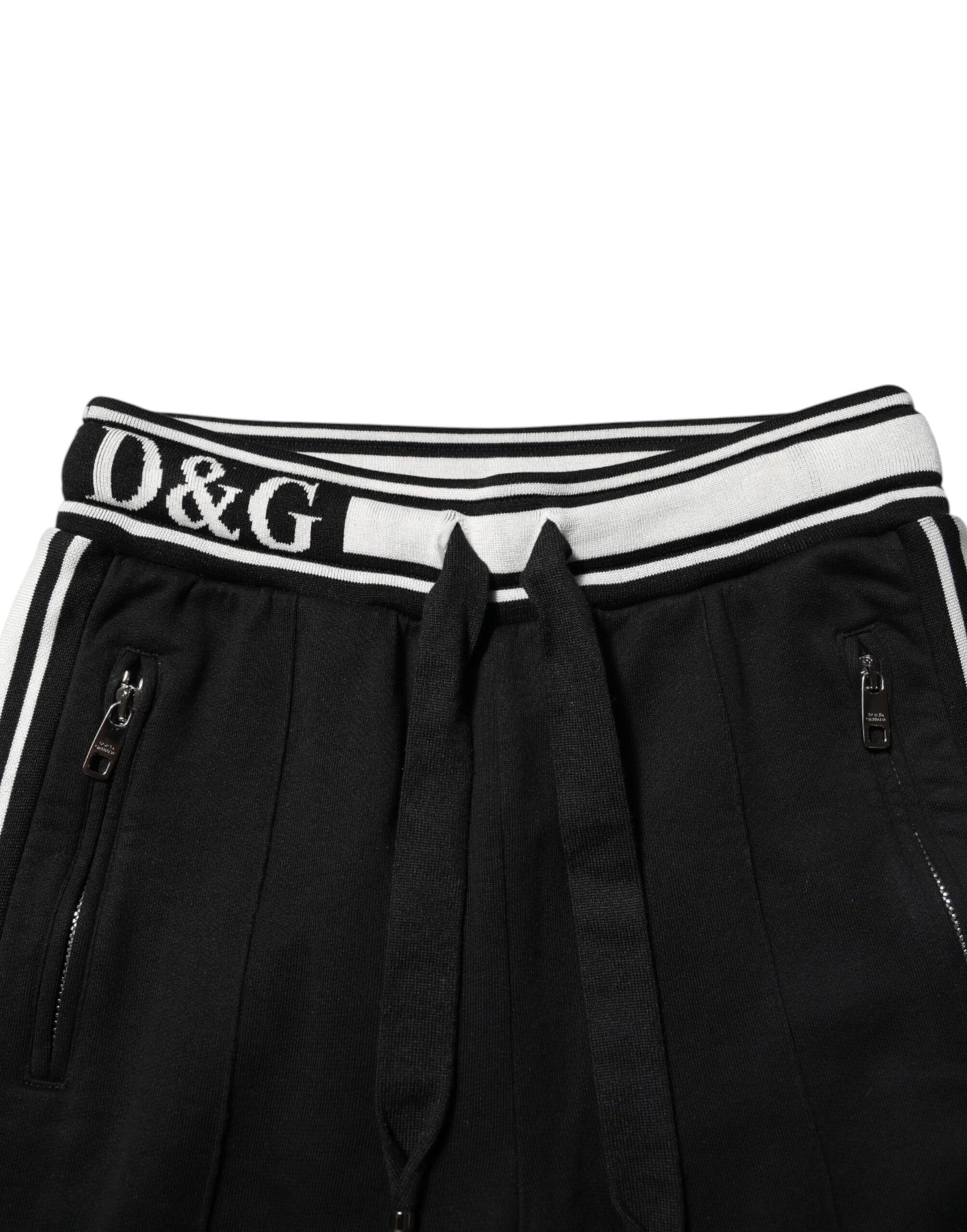 Dolce & Gabbana Black Cotton Jogger Logo Waist Pants