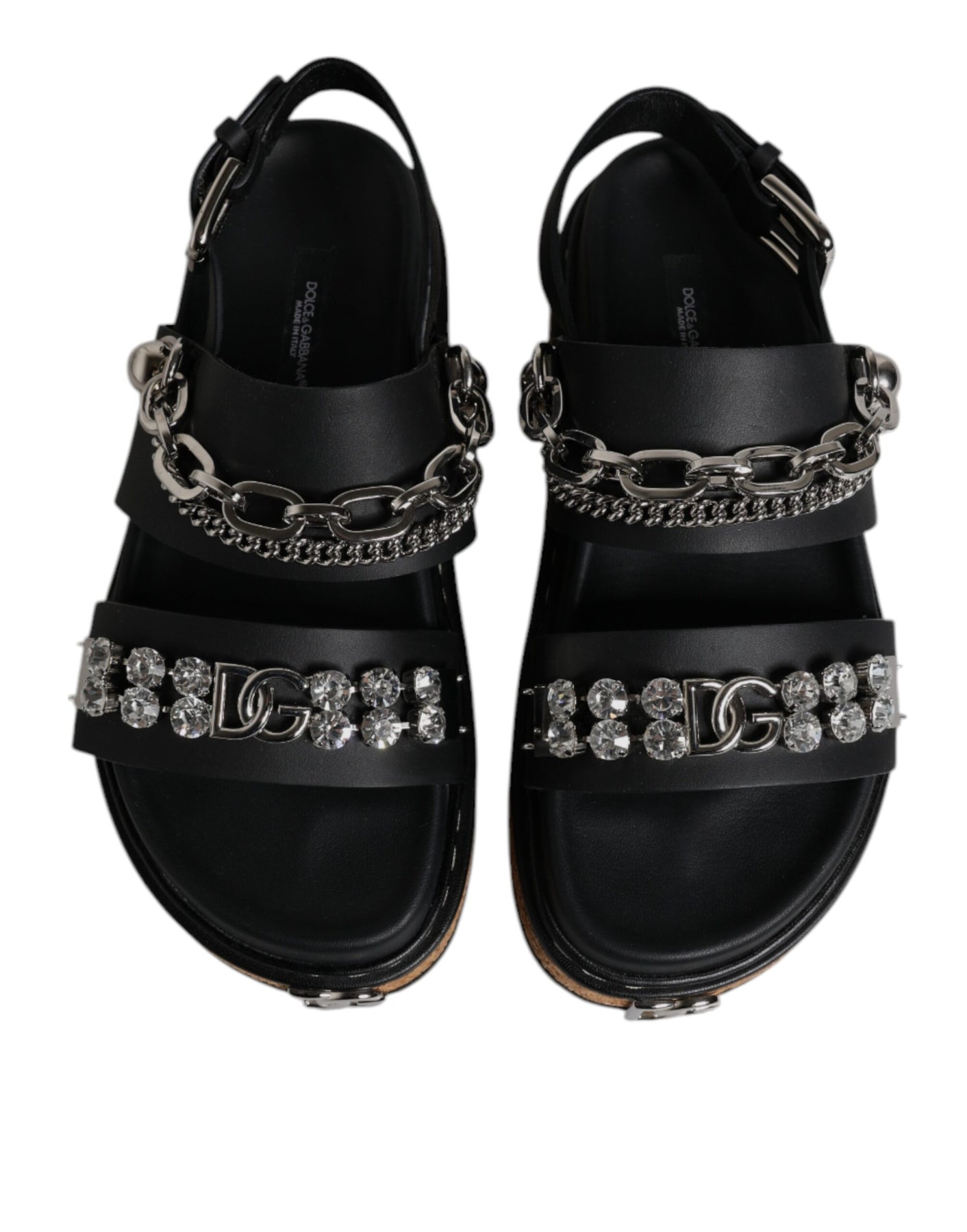 Dolce & Gabbana Black Crystal Embellish Strap Sandals Shoes