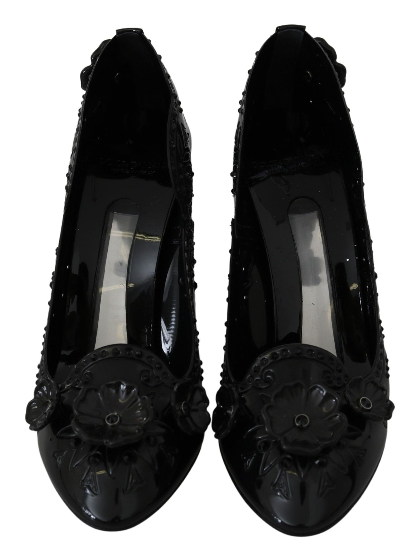 Dolce & Gabbana Black Floral Crystal CINDERELLA Heels Shoes
