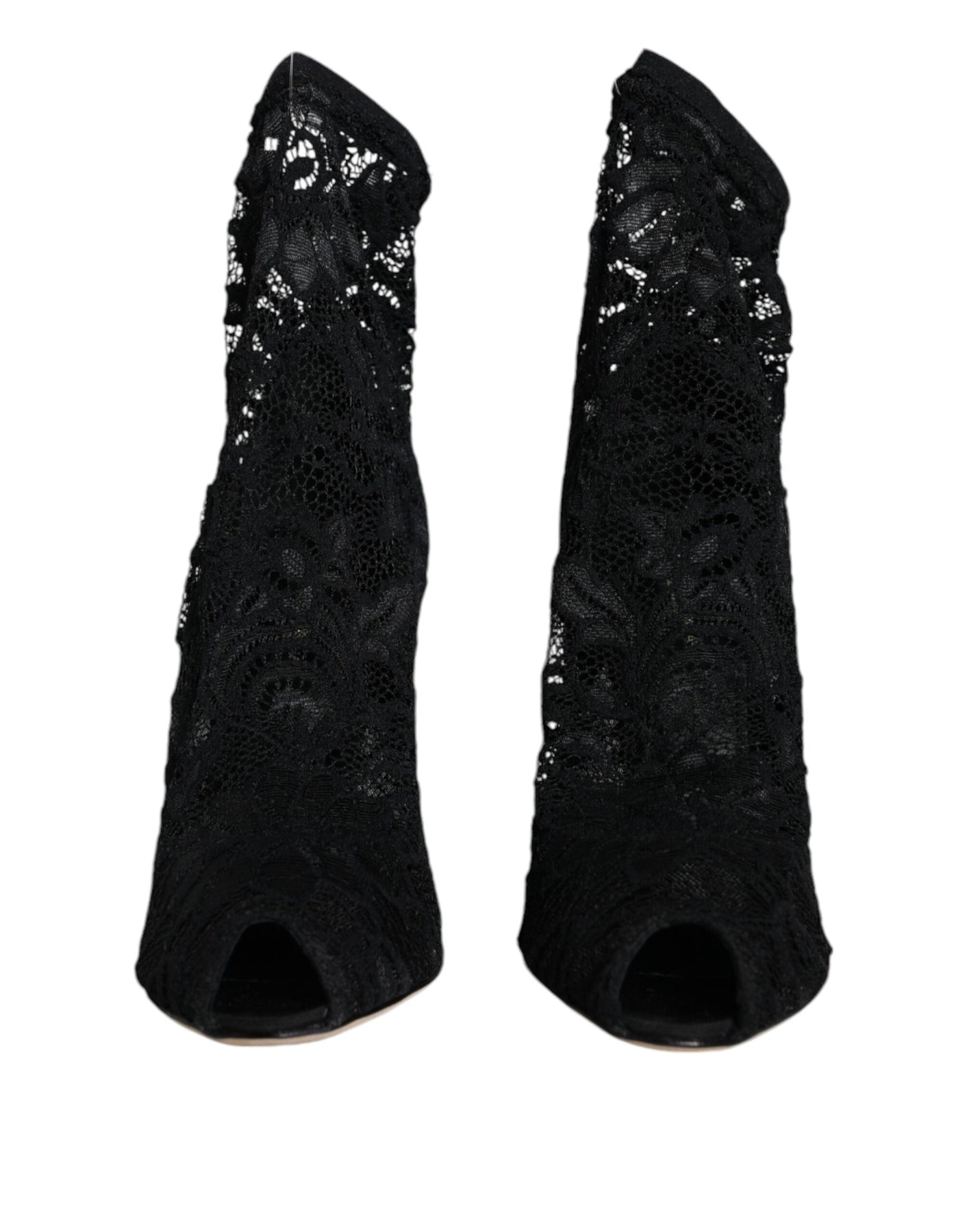 Dolce & Gabbana Black Lace Stretch Heels Mid Calf Boot Shoes