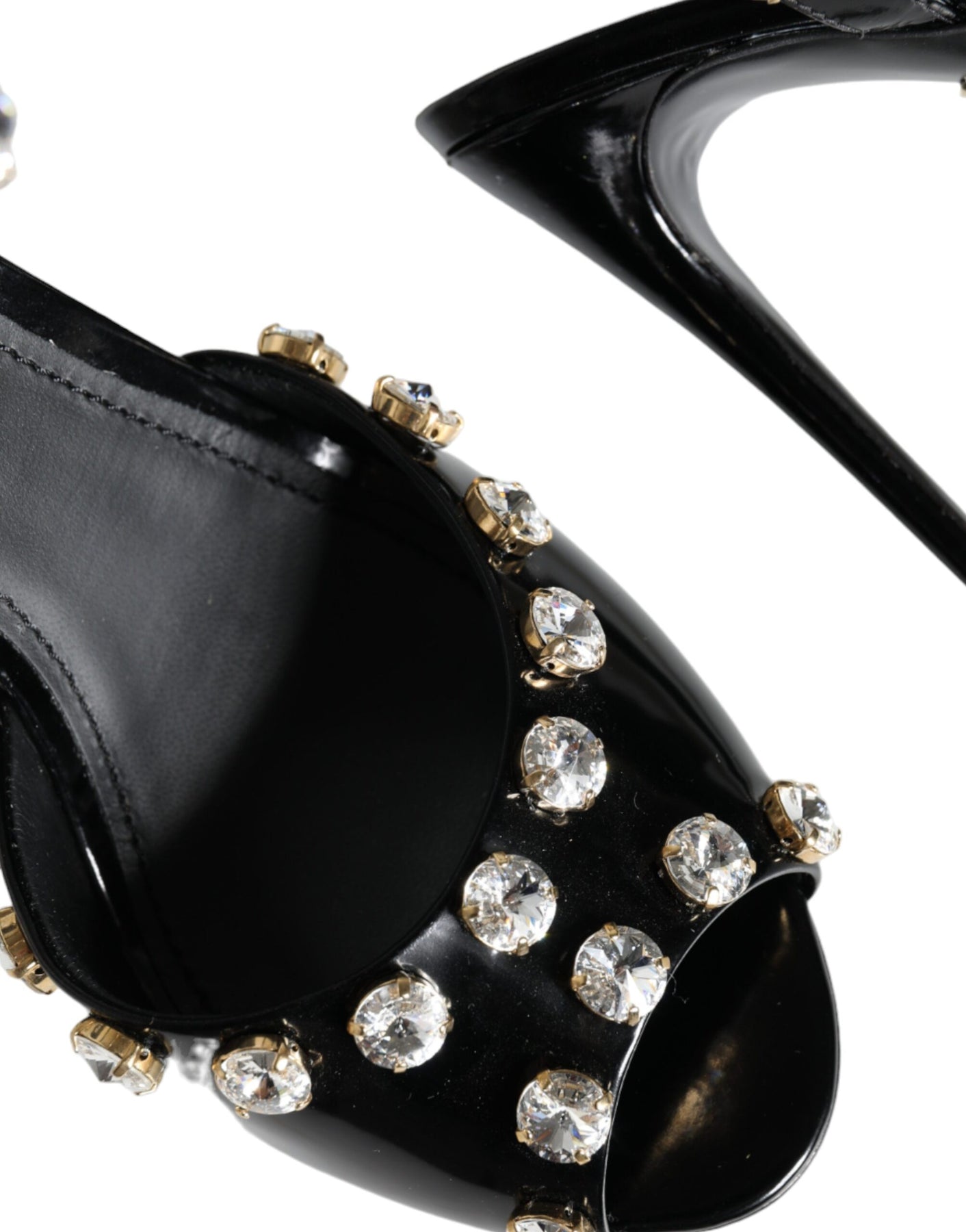 Dolce & Gabbana Black Leather Crystal Ankle Strap Sandals Shoes