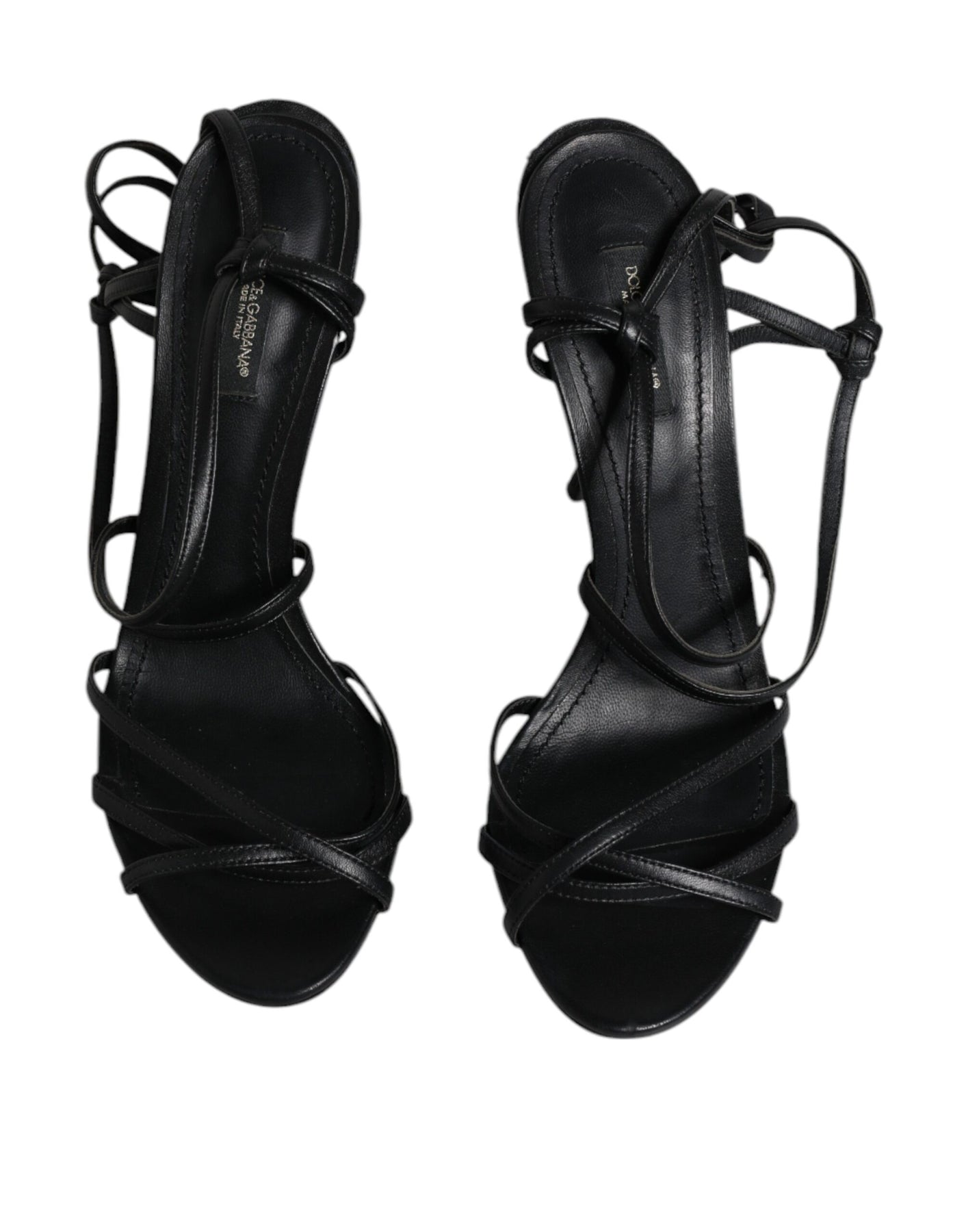 Dolce & Gabbana Black Leather High Heels Keira Sandals Shoes