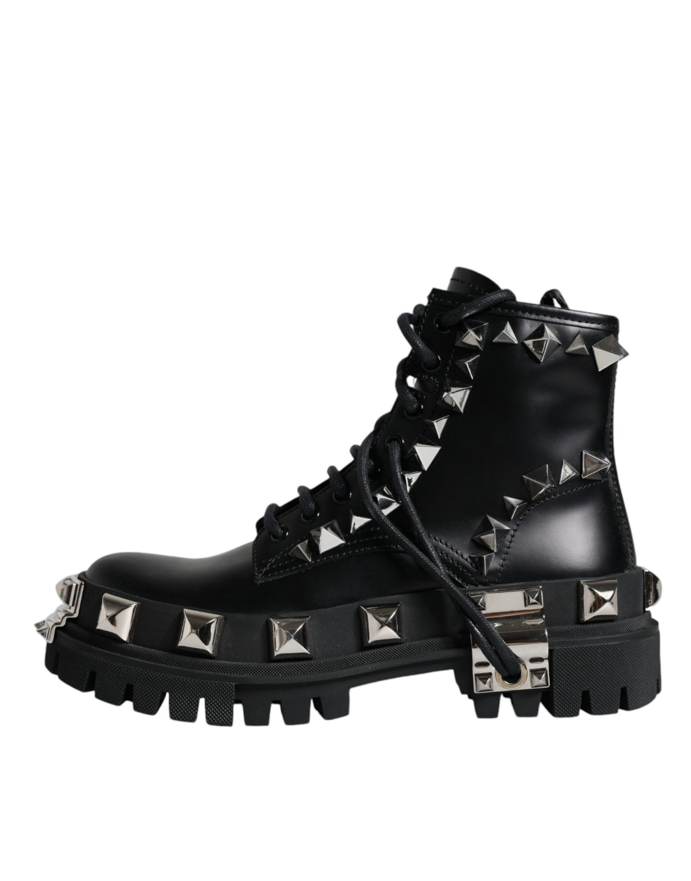 Dolce & Gabbana Black Leather Studded Trekking Boots Shoes