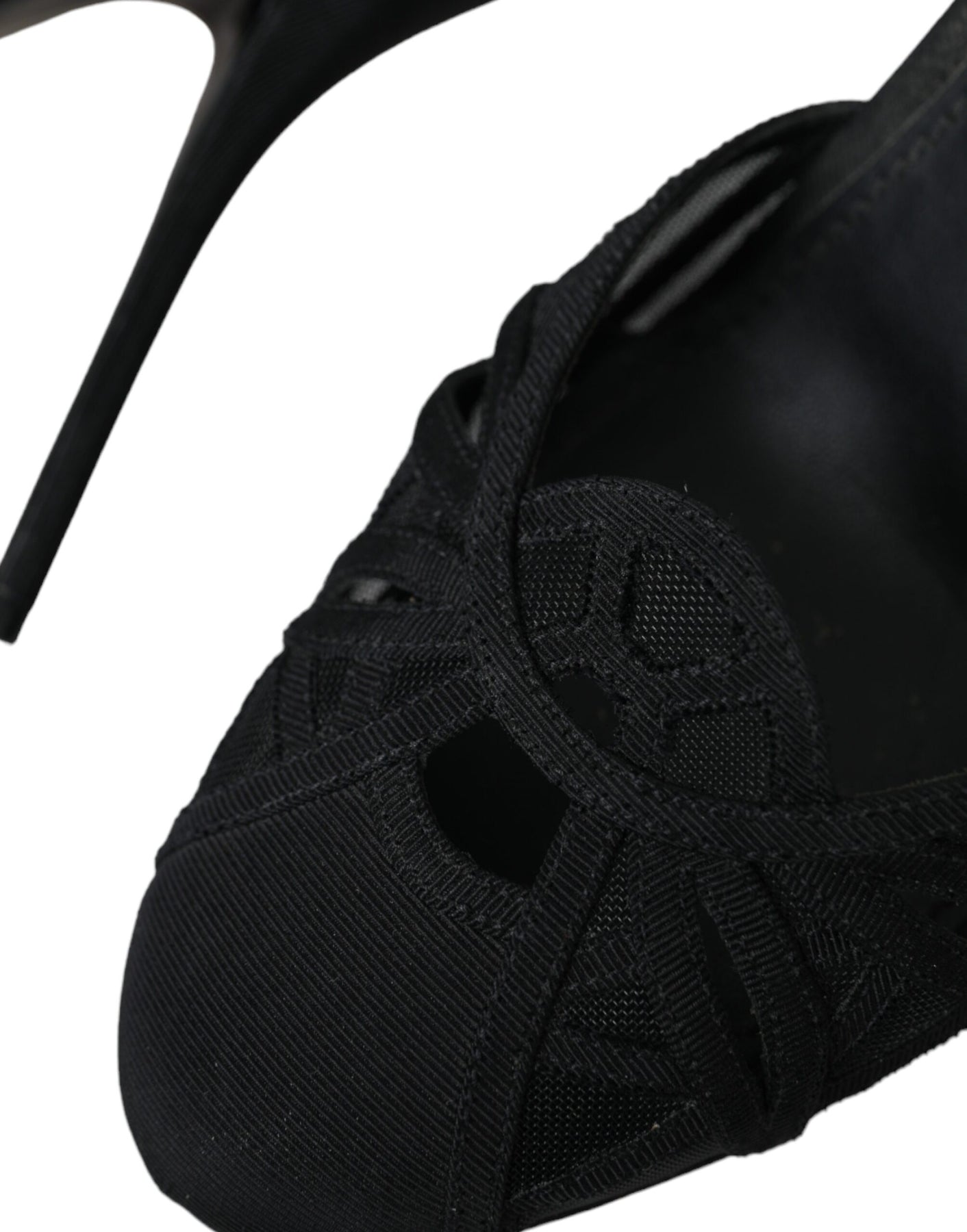 Dolce & Gabbana Black Mesh Ankle Strap Heels Sandals Shoes