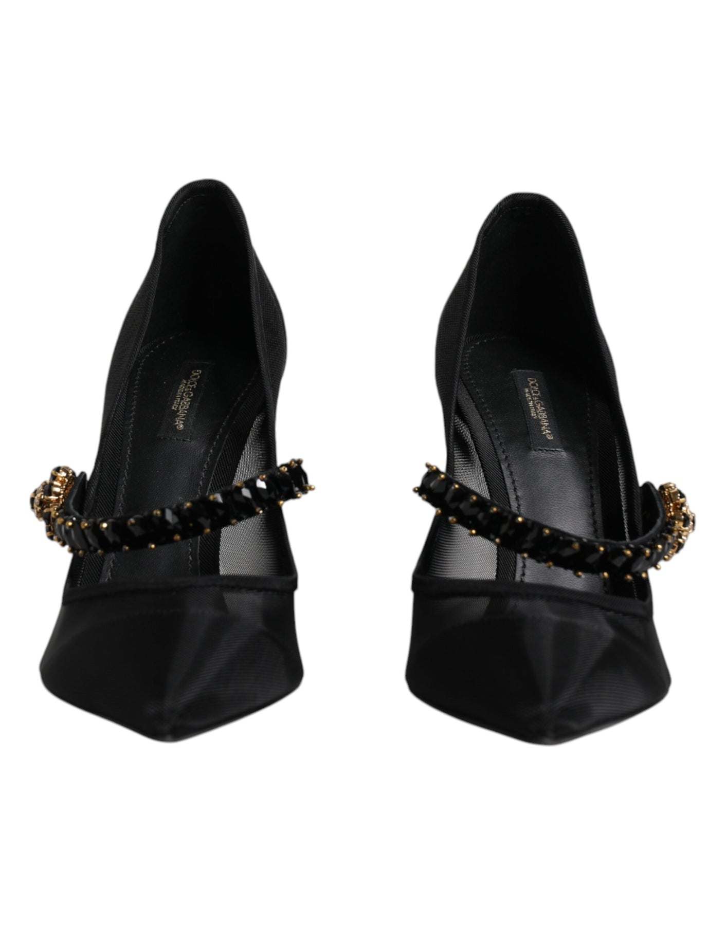 Dolce & Gabbana Black Mesh Mary Jane Crystal Heel Pump Shoes