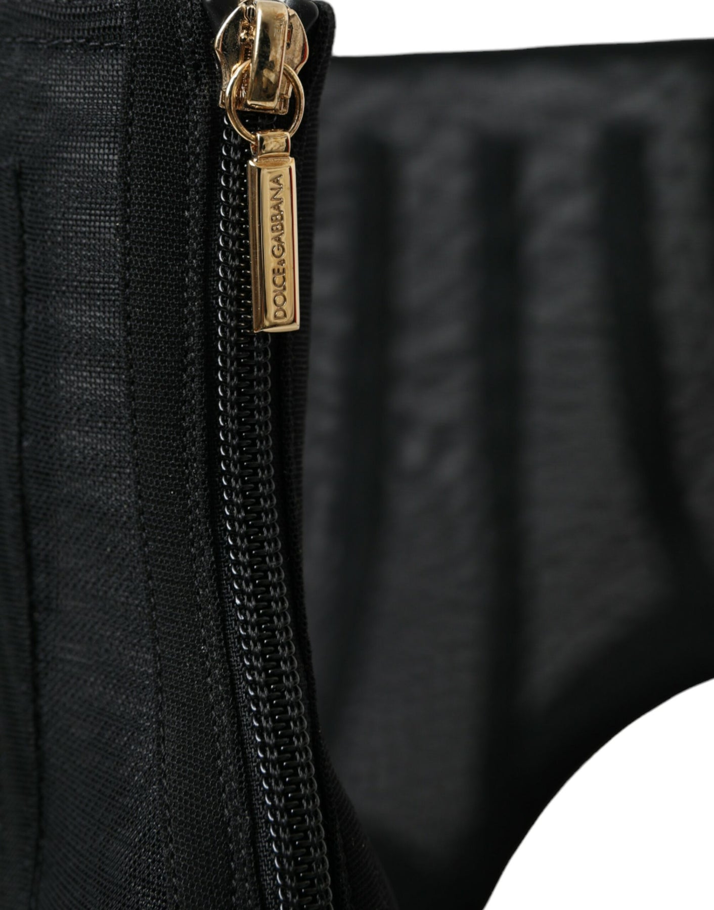 Dolce & Gabbana Black Mesh Stiletto Heels Ankle Boots Shoes
