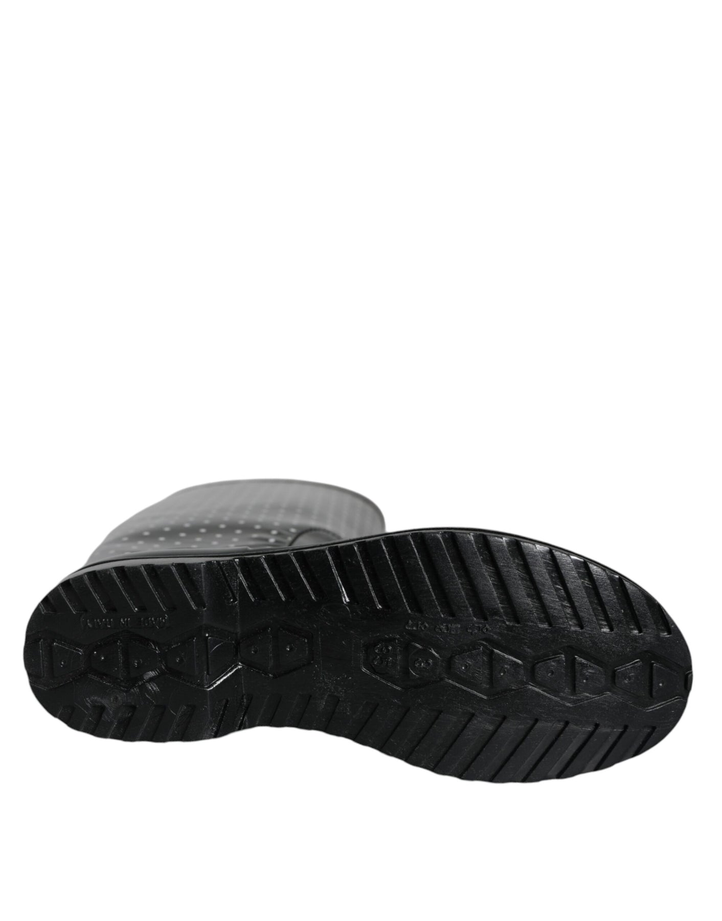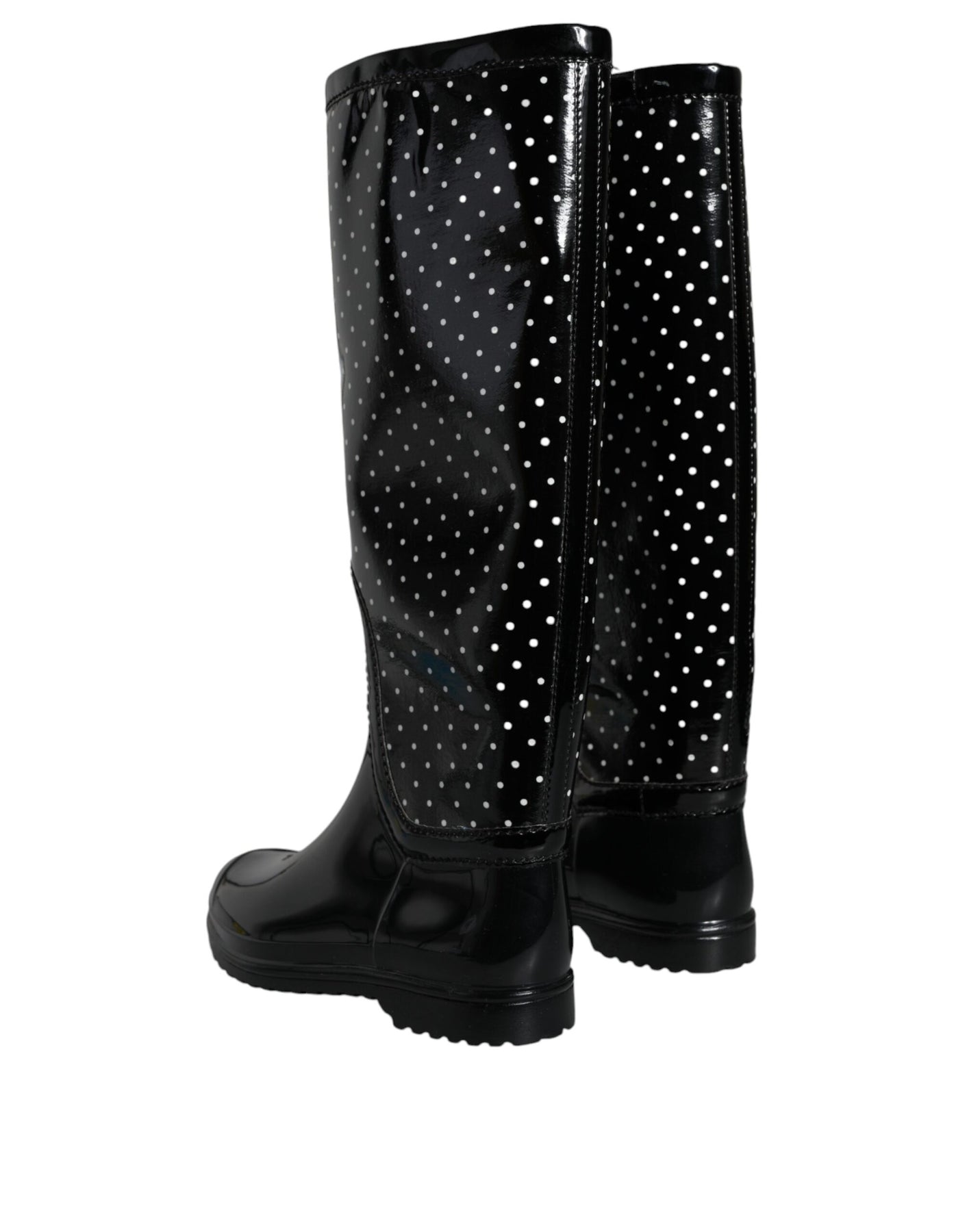 Dolce & Gabbana Black Polka Dot Rubber Knee High Boots Shoes