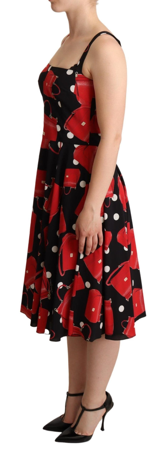 Dolce & Gabbana Black Red Bag Print A-line Mid Length Dress