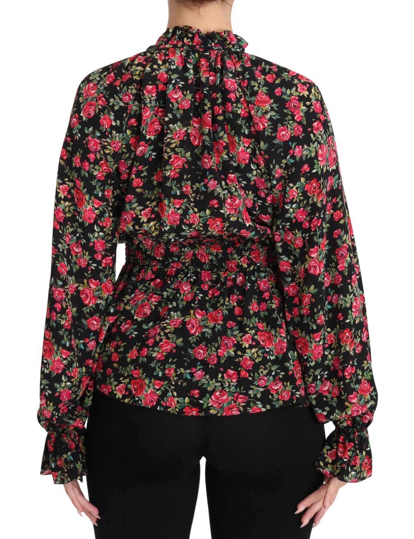 Dolce & Gabbana Black Rose Print Floral Shirt Top Blouse