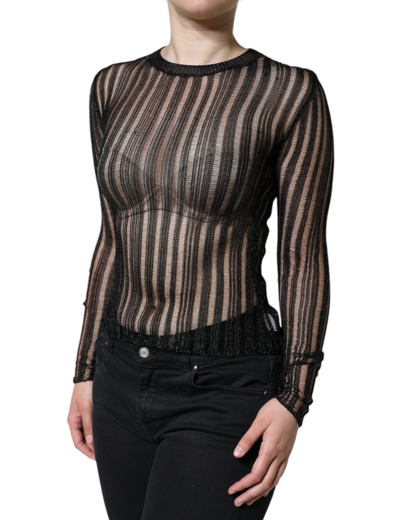 Dolce & Gabbana Black Stripe See Through Long Sleeves Top