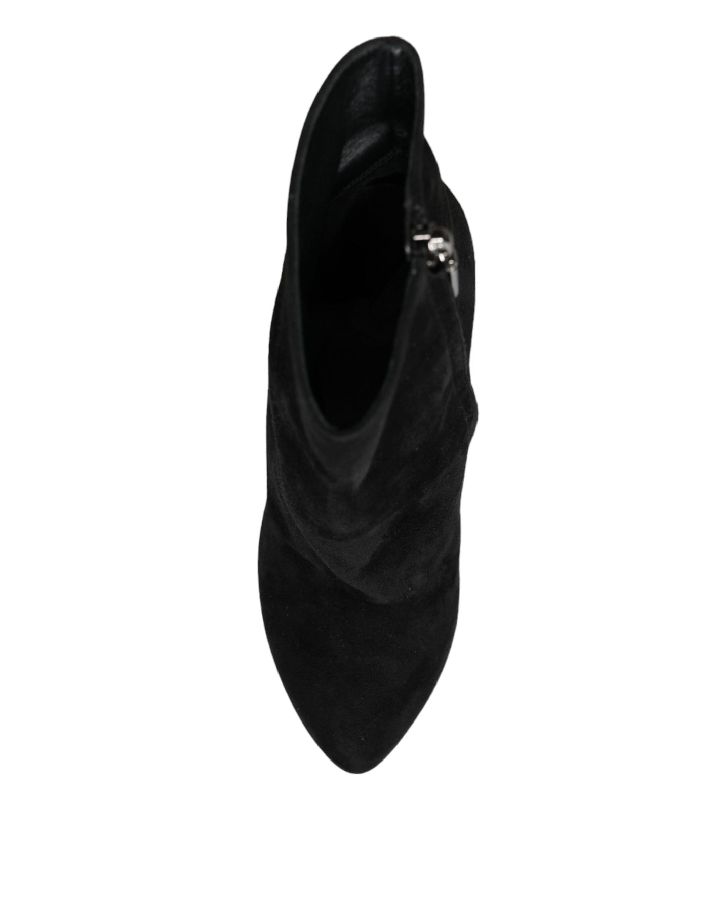 Dolce & Gabbana Black Suede Leather Mid Calf Boots Shoes