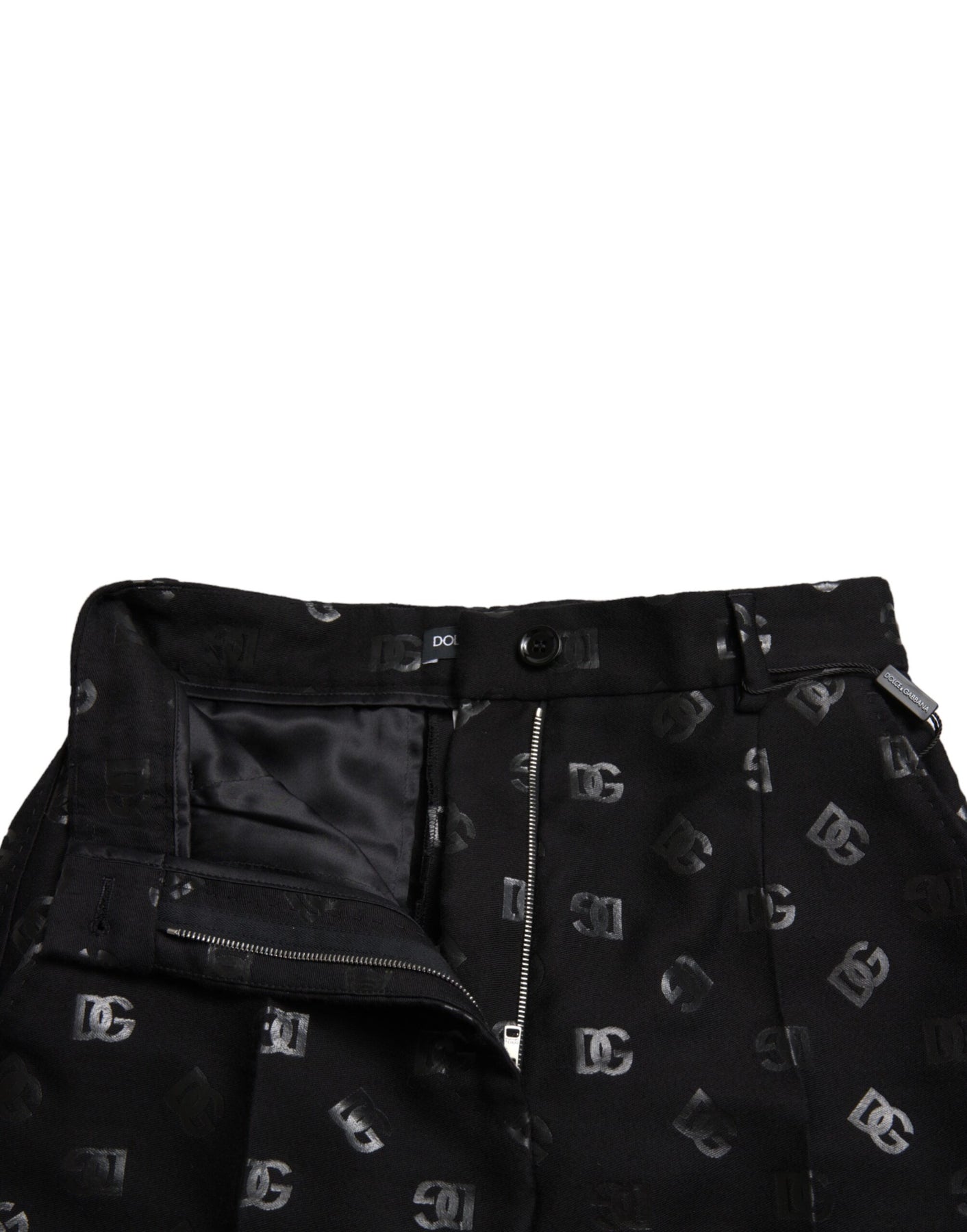 Dolce & Gabbana Black Wool DG Logo High Waist Straight Pants