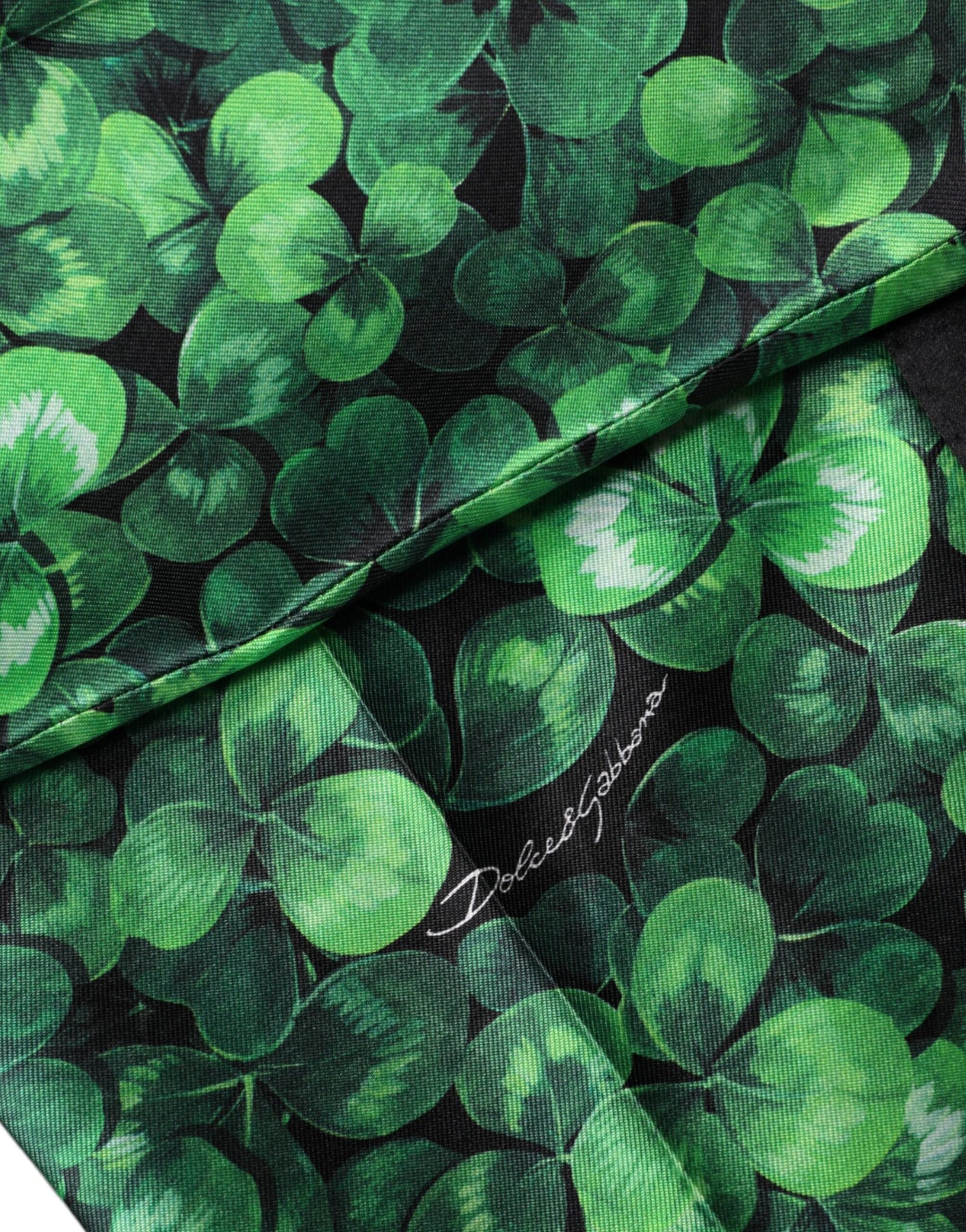 Dolce & Gabbana Green Clover Silk Satin High Waist Tapered Pants