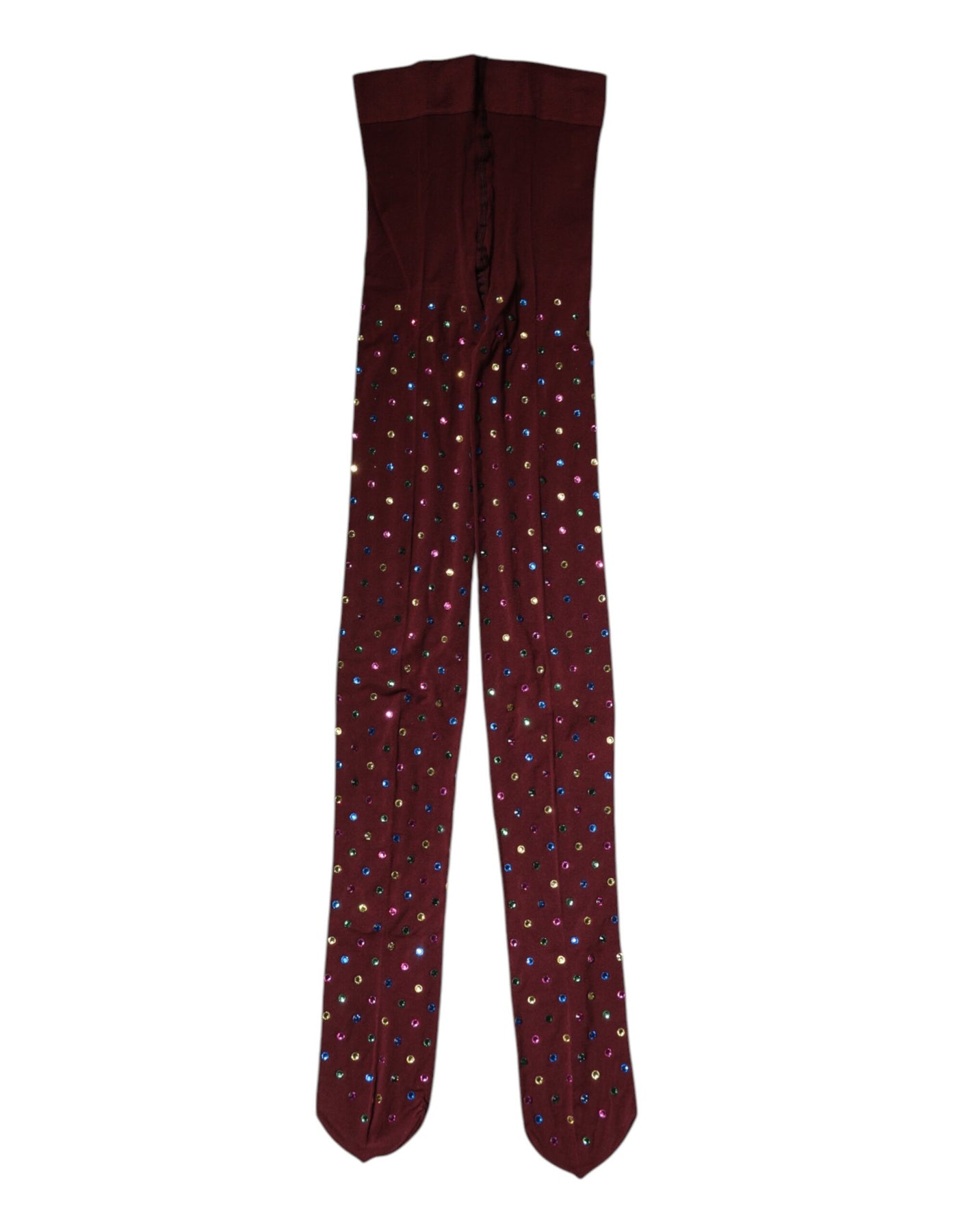 Dolce & Gabbana Maroon Nylon Crystal Embellished Pantyhose Tights