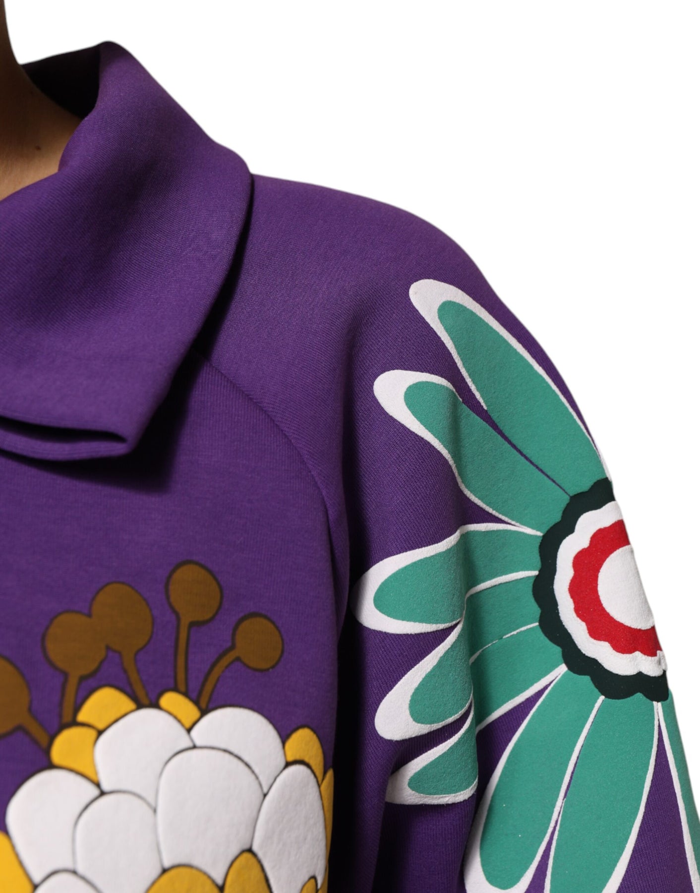 Dolce & Gabbana Purple Floral Print Cotton Long Sleeves Top