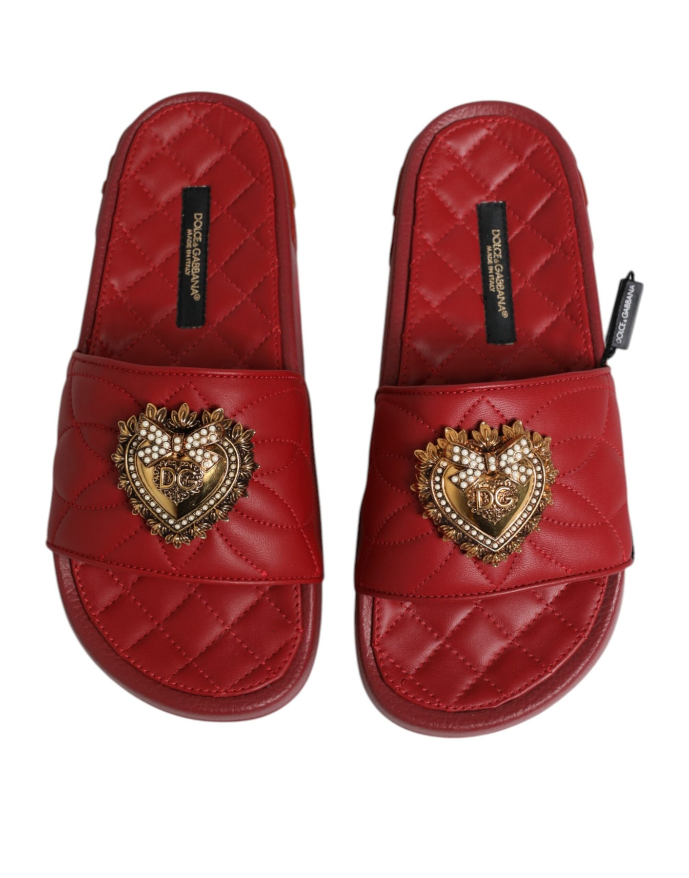 Dolce & Gabbana Red Devotion Matelassé Leather Slides Shoes