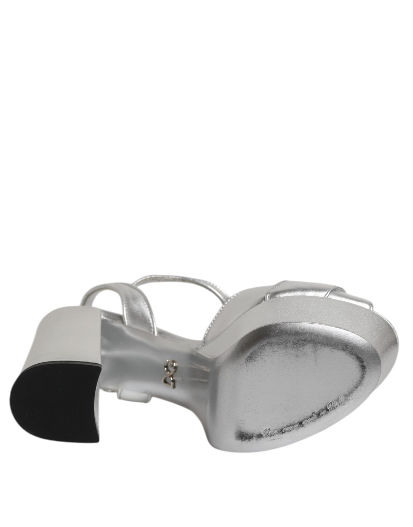 Dolce & Gabbana Silver Logo Ankle Strap Heels Sandals Shoes