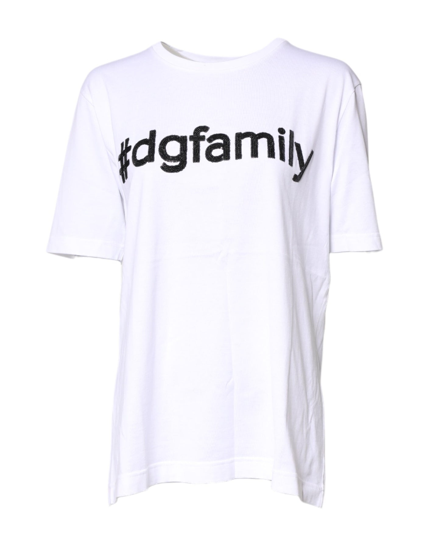 Dolce & Gabbana White #DGFamily Print Cotton Crew Neck T-shirt