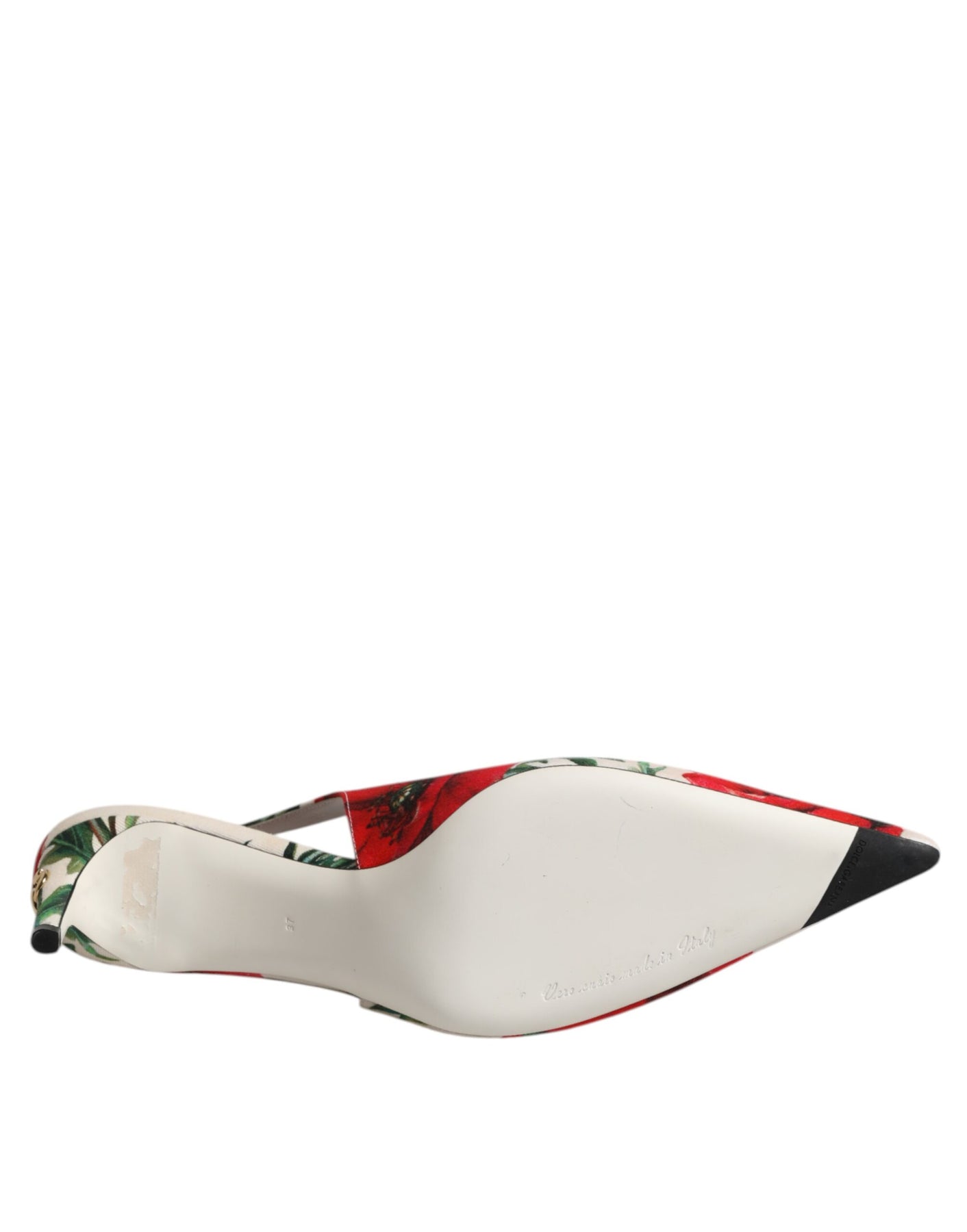 Dolce & Gabbana White Floral Heels Slingback Sandals Shoes