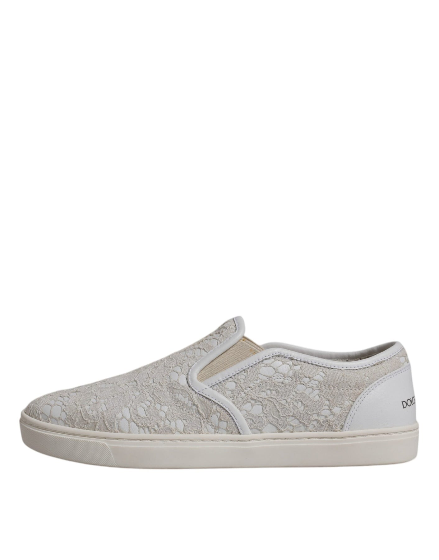 Dolce & Gabbana White Floral Lace Slip On Loafers Shoes