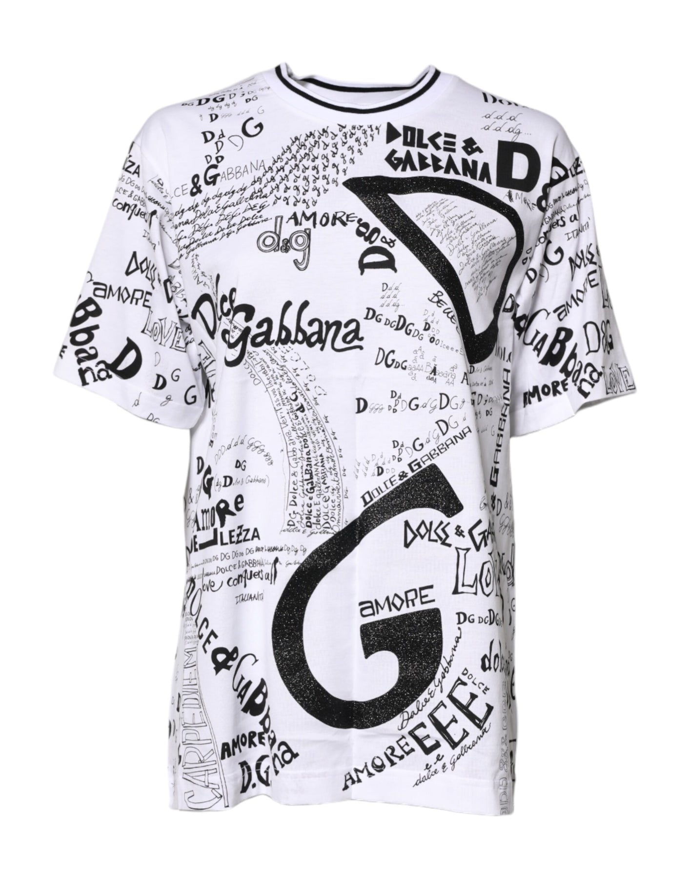Dolce & Gabbana White Graffiti Print Cotton Crew Neck T-shirt