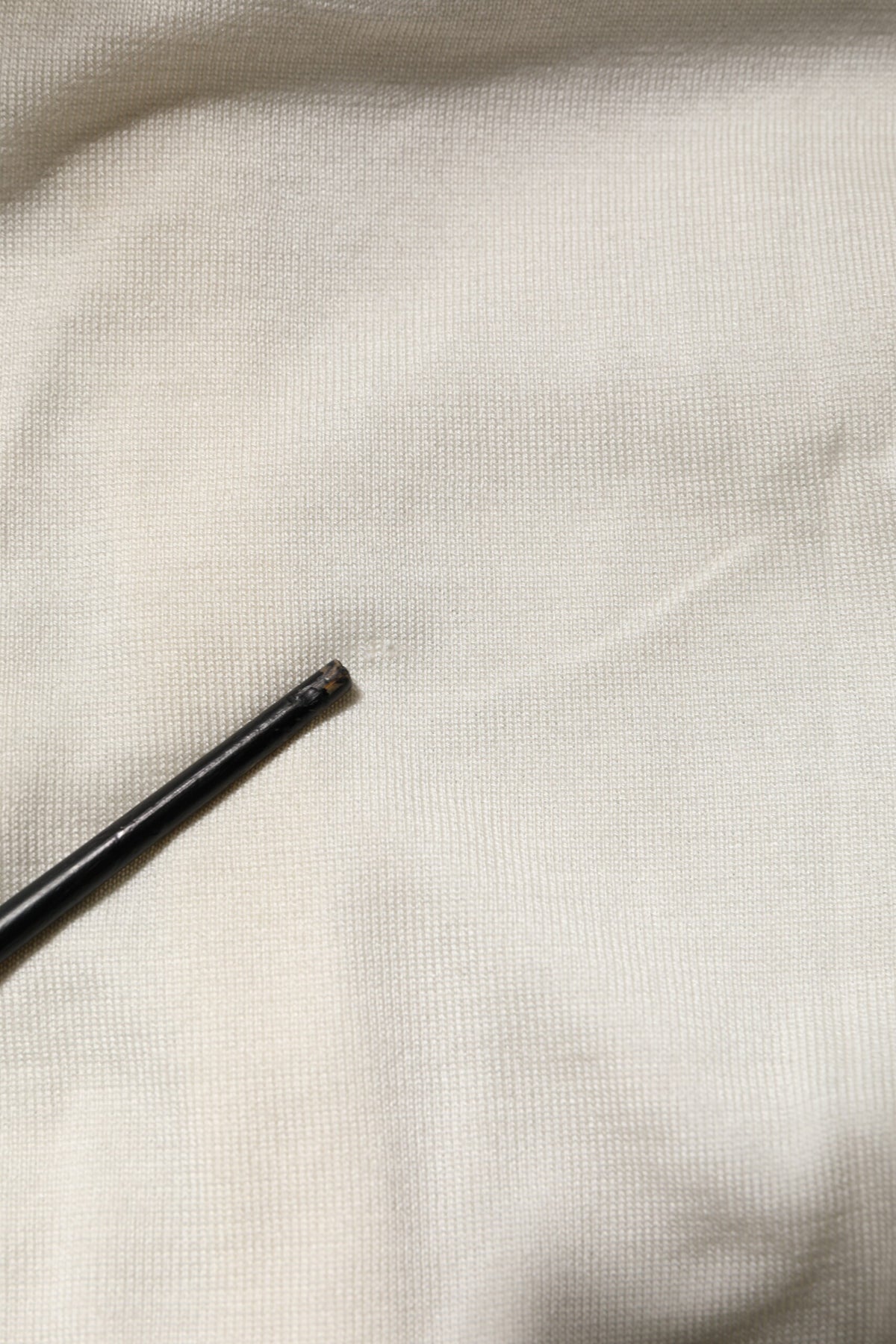 This item has a minor defect, there are pulled threads on the back side (see pictures for details).